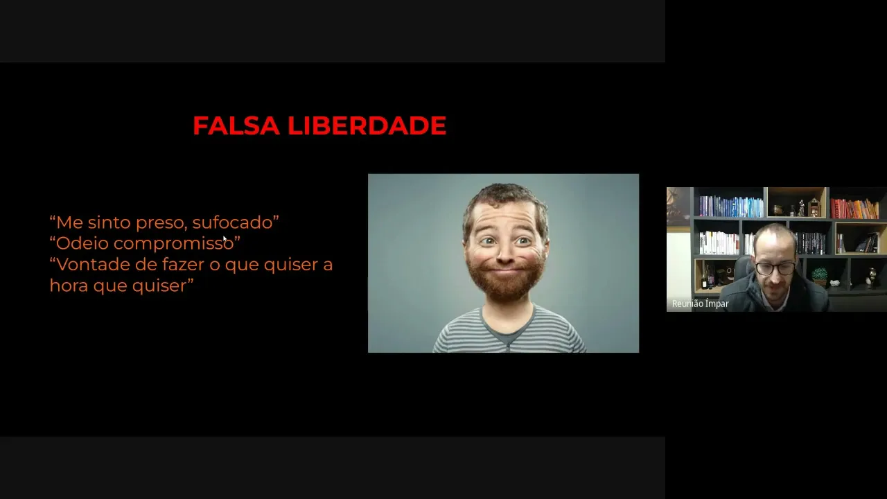 boas galerinha perguntas no final da aula e comentários também né Depois acréscimos lembrando nossos e-mails tá pessoal Vitória arroba academias.com.br e ajuda@cademia protagonista.com.br bem-vindo Dona julex Então vamos iniciar com alguns conceitos tá pessoal que hoje assolam o nosso mundo moderno que é a falsa Liberdade vendida né esse carinha representa bem esse homenzinho moderno Modern Nex já viram frases do tipo me sinto preso sufocado nesse relacionamento nesse trabalho etc odeio compromissos pessoas que odeiam compromissos e Aquela falsa Liberdade vendida Que é a liberdade do vontade de fazer o que eu quiser a hora que quiser essa