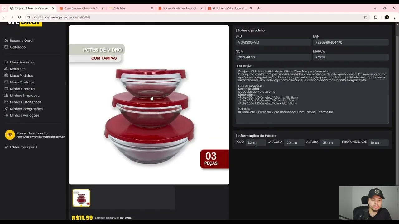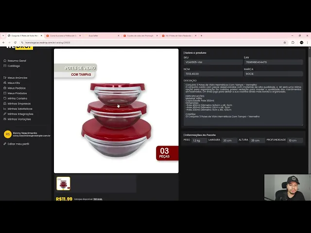 lá eu vou pegar esse produto aqui como exemplo que é esse conjunto de três Pot na idrop Ele custa r$ 1 11,99 então você vai vai pegar esse valor de R 11,99 E você vai pegar alguma forma que você deseja precificar temos como precificar numa planilha que você vai ter aqui na descrição do vídeo você pode baixar a planilha e utilizar perfeito ou você pode utilizar alguma ferramenta online que já precifique para você de forma mais automática vai depender da forma que você preferir eu vou mostrar Dos dois jeitos e você verá como se aplica