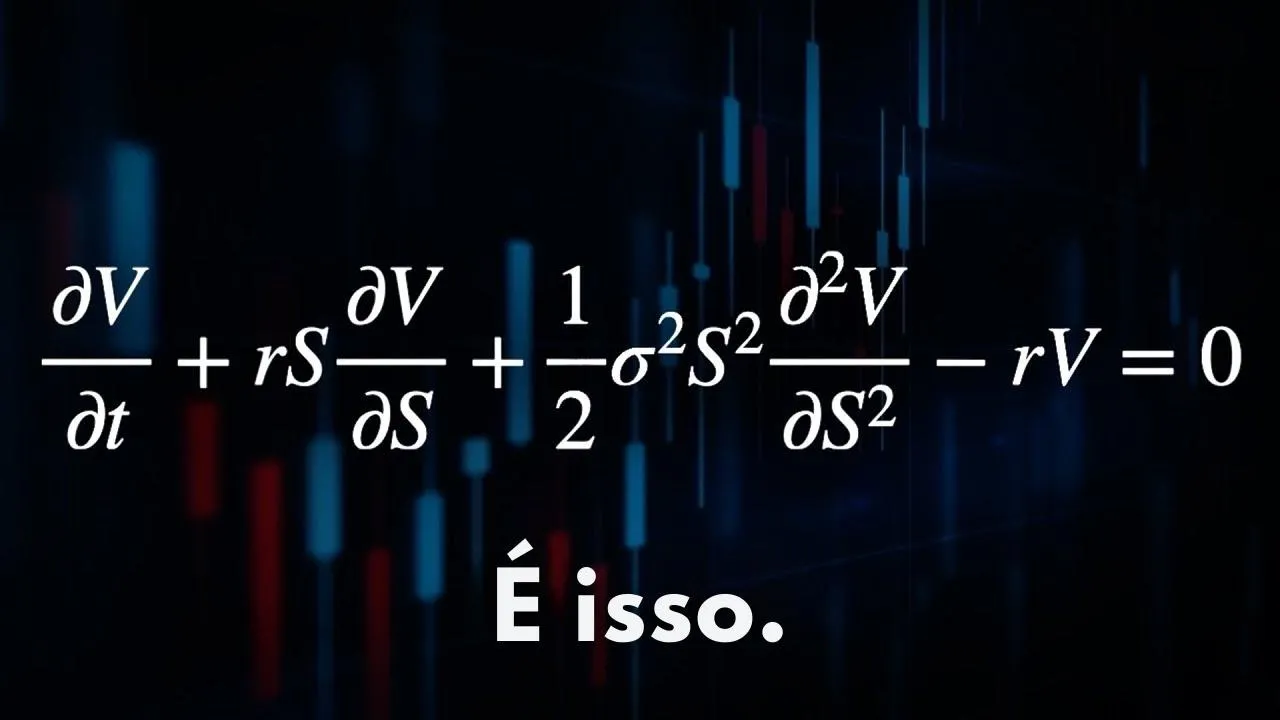 duas equações Black schs e merton chegaram à equação mais famosa em Finanças ela relaciona o preço de contratos a qualquer ativo como ações ou títulos no ano em que publicaram essa equação foi fundada a bolsa de opções de Chicago Por que essa equação é tão importante como isso revolucionou as Finanças bem porque quando você resolve essa equação diferencial parcial você obtém uma fórmula explícita do preço da Opção como uma função de um monte desses parâmetros de entrada e pela primeira vez você agora tem uma expressão explícita onde você insere os parâmetros e surge esse número