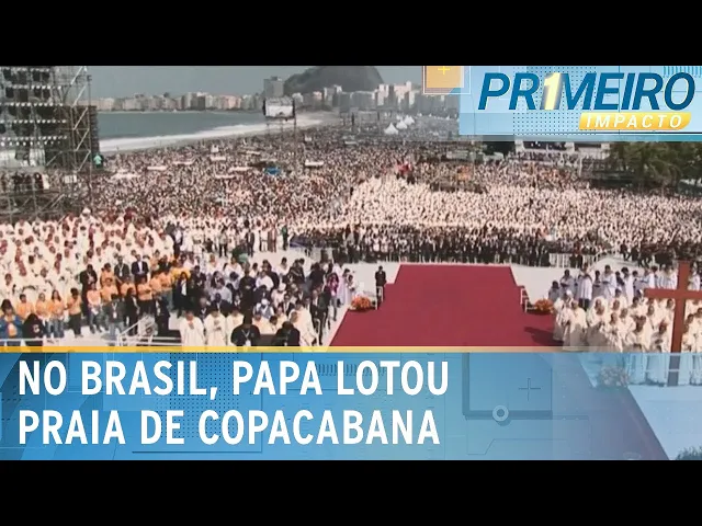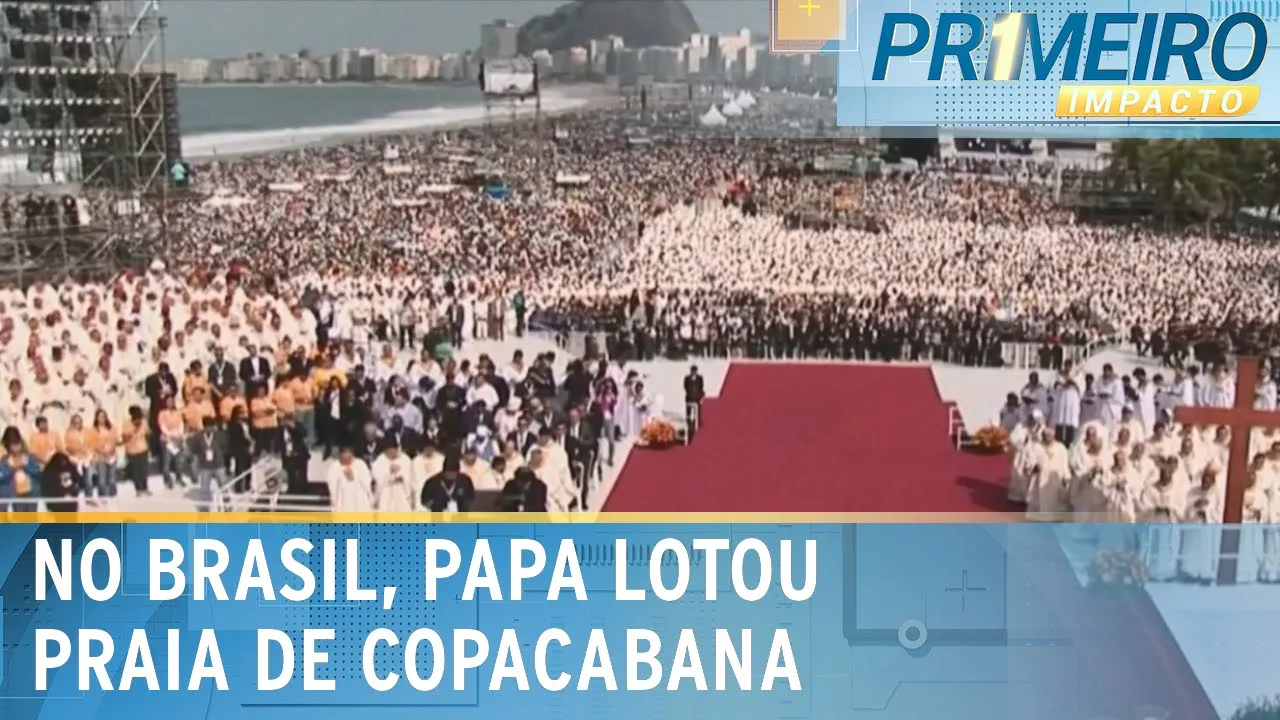 aqui no primeiro Impacto é o Papa Francisco era devoto de Nossa Senhora Aparecida e como disse agora a pouco né o Cardeal esteve uma única vez no Brasil mas tinha uma relação muito forte com o povo brasileiro vamos entender porquê primeiro Papa latino-americano Francisco esteve no Brasil em 2013 para participar da Jornada Mundial da Juventude foi a primeira viagem do pontificado do líder católico francisco aterriçou no Rio de Janeiro no dia 22 de julho na base aérea do Galeão e como chefe de estado foi recebido pela presidente Dilma Roussef já no centro da cidade falhas