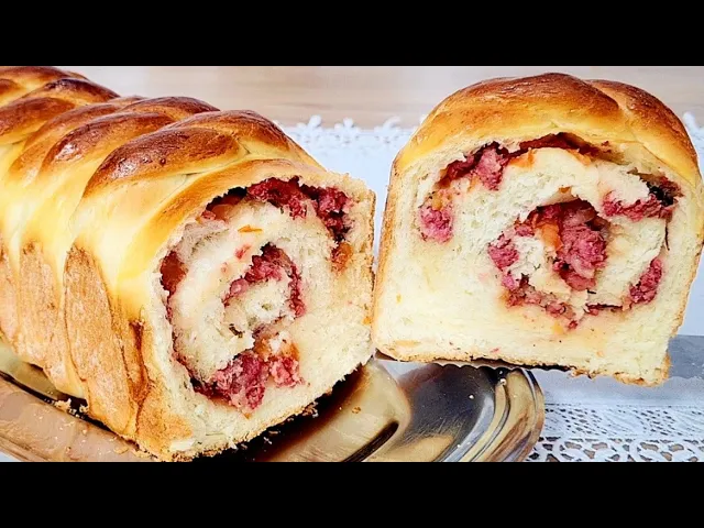 ao meio assim as tiras ficam bem parecidas e eu vou cortar aqui 16 tiras depois é só trançar Não tem segredo nenhum mas esse é só um jeito de fazer de repente você não quer ter todo esse trabalho então não esquece é só espalhar o recheio por toda a massa enrolar todo o pão que dá certo também e esse é um pão bem grande ele é um pão Comprido você consegue fazer dois pães menores com essa receita depois de enrolar todas as trancinhas eu vou prender essa massa embaixo do [Música] pão e agora é só