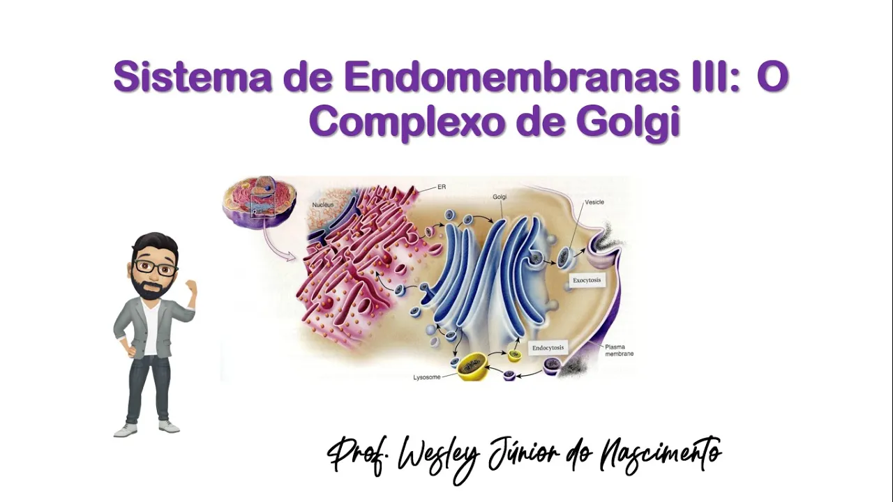 o Olá pessoal tudo bem com vocês aqui é o professor Wesley Essa é nossa décima segunda aula do curso de biologia celular e hoje nós discutiremos aqui sobre sistema de endomembranas enfatizando em especial o complexo de golgi então simples casamente os objetivos e nos aulas são primeiro compreender qual que é estrutura do complexo de golgi então a gente precisa entender Jardim de mão e o complexo golgiense ele tem uma porção que a gente chama de Fases e uma outra porção chamada de fase trans a gente precisa entender aí que ele é organizado em cisternas Tá