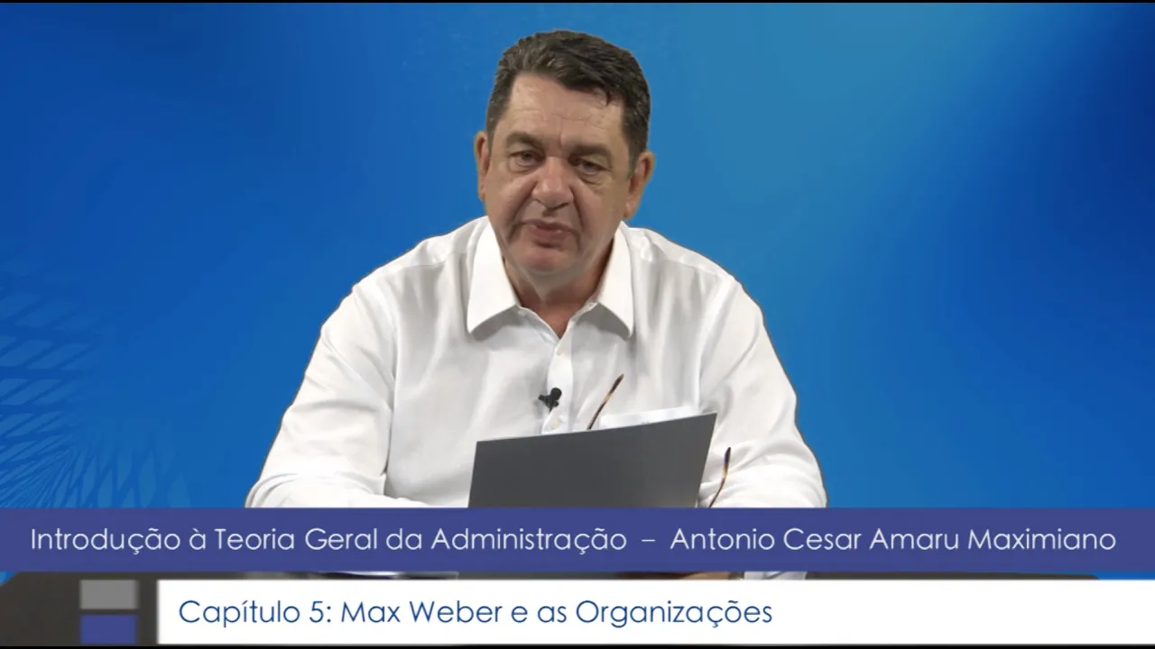 este é o vídeo correspondente ao capítulo 5 do livro introdução à teoria geral da administração terceira edição publicado pela editora atlas o título do capítulo é max weber e as organizações este capítulo está dividido nos seguintes tópicos 1 max rever ea burocracia conheça o grande cientista social alemão que fez o estudo mais importantes sobre as organizações amitai e sione o poder e se lesione propõe uma classificação das organizações com base nos tipos de poder e suas combinações modelo de peter blau richard scott brown e scott adota uma perspectiva dos beneficiários das organizações para classificá-las disfunções