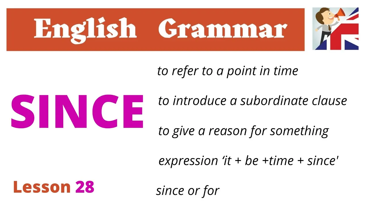 Ling portal online school presents all about synths in English grammar how to use synths in English in this grammar lesson we will be speaking about the word since and its usage in English grammar since plays various roles in English speech and can act as a preposition adverb or conjunction we use since in the following cases when we're mentioning time or event in the past when we're introducing reasons or explanations since to refer to a point in time we use since to mention a time or event in the past when we're describing an event or situation
