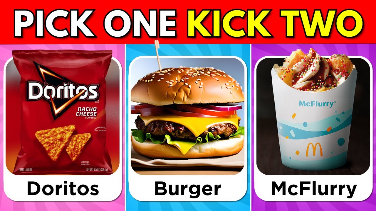 chocolate bar [Music] pick one kick one pistachio or toffee [Music] pick one kick one peach or mango [Music] [Music] click on this video and play pick one kick one junk food edition goodbye