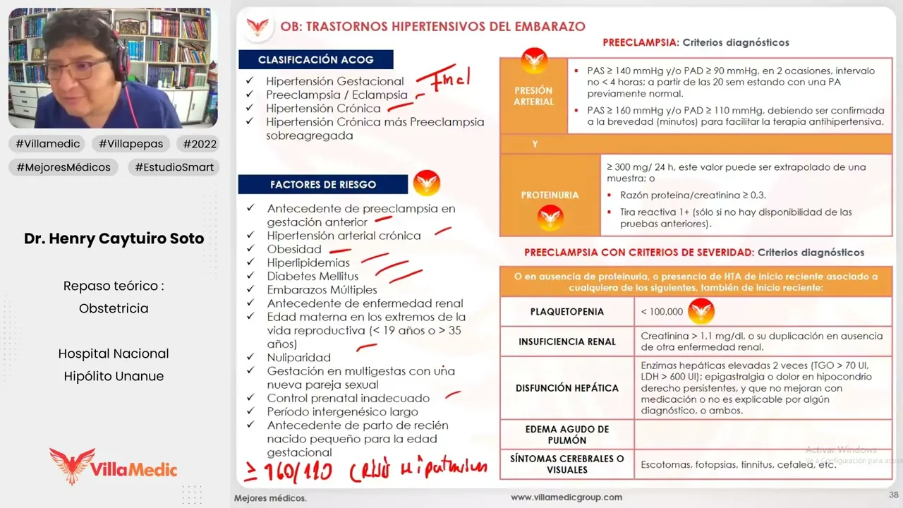 ser confirmable de edad para iniciar terapia antiparte sino por qué Porque más de 160 a 110 mayor igual a 160 110 eso es hipertensiva Y eso en verdadera emergencia qué factor de riesgo tenemos para lo que hipertensivos el que haya tenido un antecedentes de embarazo anterior hipertensión arterial Crónica tiene hipersión desde antes del embarazo obesidad y epidemia de diabetes embarazos múltiples antes de enfermedad renal estos casos sí pues no son los que por su nefropatía puede ser el caso del lupus pueden hacer preclancia de manera más espectacular vegetación en múltiples y múltiples de gestas con