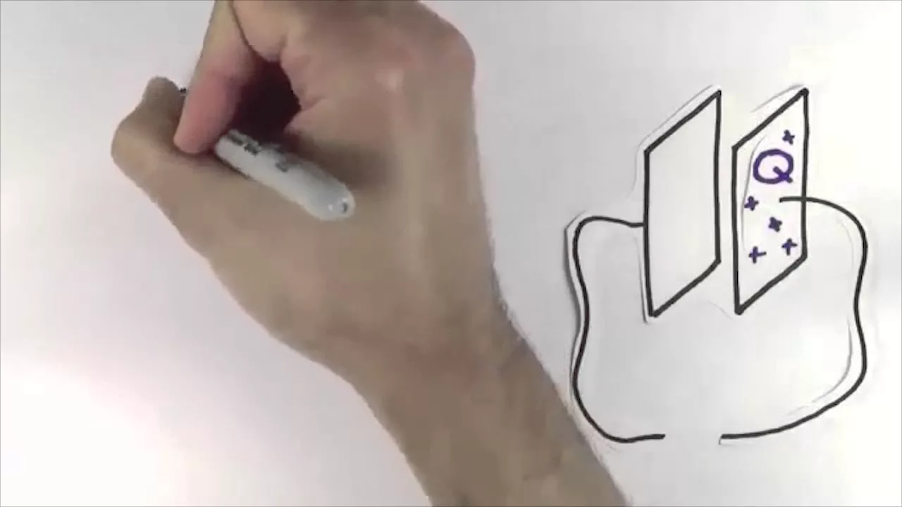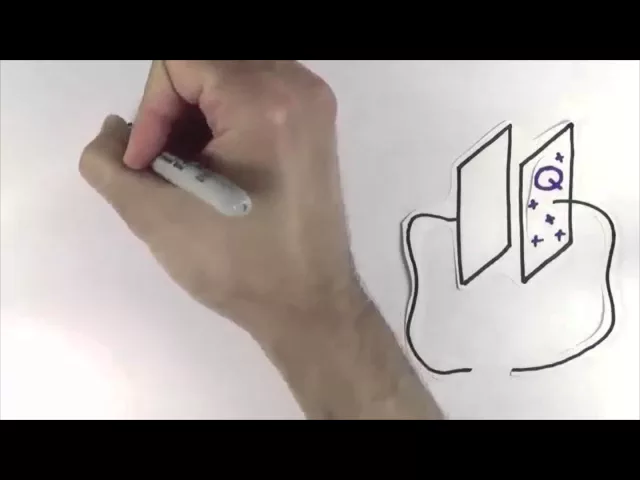 Se uma carga Q se move devido a uma diferença de potencial V, a mudança na energia potencial elétrica da carga é simplesmente Q multiplicado por V. Olhando para esta fórmula, o que você pensa sobre a energia armazenada em um capacitor carregado com uma carga Q e uma voltagem V? Você poderia pensar em Q vezes V, mas na verdade a energia é ½ vezes Q, vezes V.