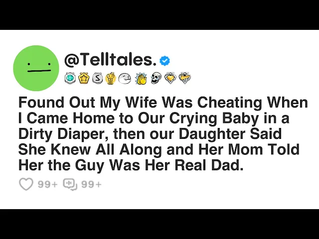 found out my wife was cheating when I came home to our crying baby in a dirty diaper. Then our daughter said she knew all along and her mom told her the guy was her real dad. I, 35M, met my now soon to be ex-wife, 33F, during uni 12 years ago.