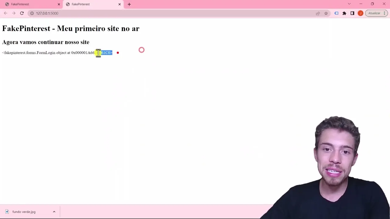 rodar tá vendo nosso site já tá no ar mas se você quiser pode rodar também no seu só para você visualizar Olha só quando você carrega o formulário ele vai aparecer nesse formato daqui que que significa isso aqui é um objeto Python Ou seja quando você carrega o formulário dentro do formulário você tem vários Campos que são todos aqueles Campos que estavam lá no nosso formas todos os campos que aqui ó se você abrir lá o seu forms são esses Câmbio você tá vendo aqui ó o campo de e-mail campo de senha campo de botão