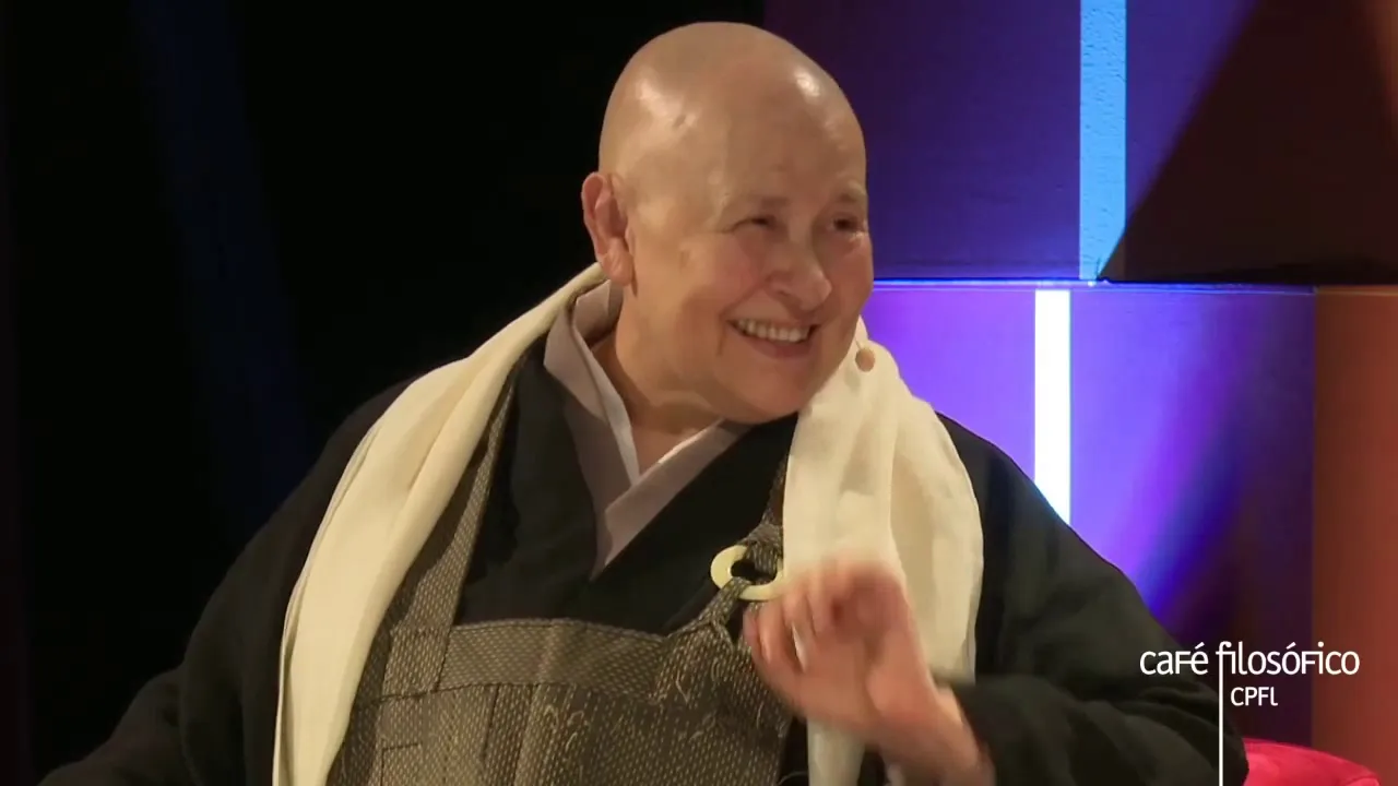 de Santos e com a Secretaria de Cultura de Santos eu quero agradecer especialmente a toda a equipe aqui do desse maravilhoso Teatro Coliseu que nos ajudou a montar esse evento de hoje e mais uma vez Louvar a parceria que nós temos que a editora papirus 7 mares que frequentemente nos possibilita realizar Cafés muito especiais hoje nós vamos ter a presença da e já coen monja coen foi jornalista profissional em sua Juventude e hoje atua como missionário oficial da tradição Soto Shu primazia e fundadora da comunidade Zen budista do Brasil segue os ensinamentos de buda e