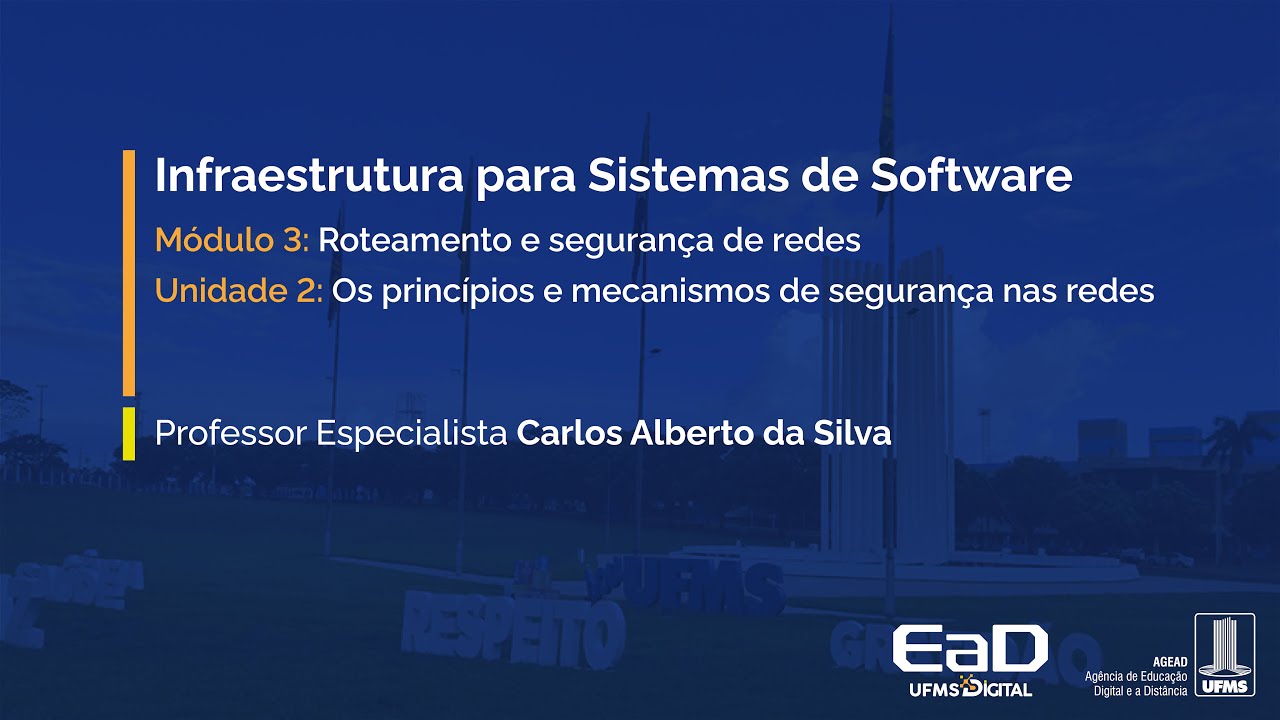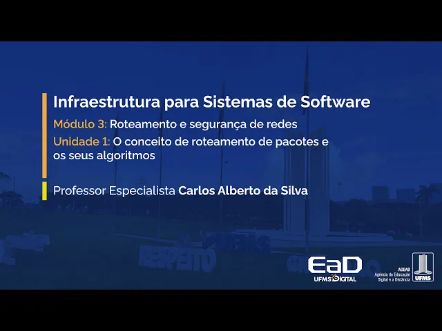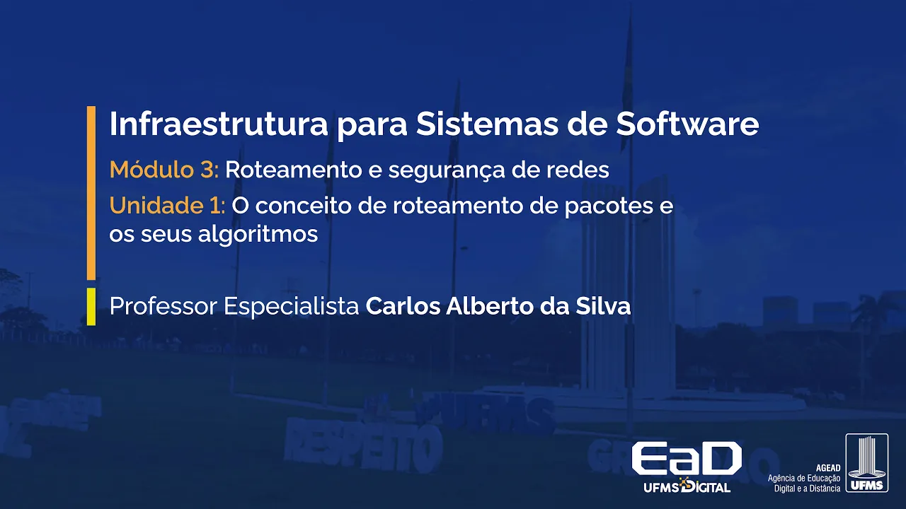 [Música] dando continuidade à disciplina de infraestrutura para sistemas de software hoje veremos o módulo três a parte de como as redes fazem o roteamento dos seus pacotes e estudaremos os mecanismos de segurança de como os dados são protegidos durante o processo de trafegar numa rede Então vamos lá unidade um conceito de roteamento de pacote e seus algoritmos o conceito de roteamento de pacotes o que eu planejei para essa aula então vamos olhar conceito de roteamento os tipos de roteamento como eles são classificados e como são executados esses Protocolos de roteamento pelos seus algoritmos Então vamos lá o conceito de roteamento é simples é você ter uma forma de encaminhar os pacotes dentro de uma rede lembrando uma rede é aquele emaranhado de roteadores conectados ao redor do do mundo então quando eu mando um pacote daqui por exemplo para um país lá na Europa ele tem que escolher uma rota E essas rotas elas são pré-definidas Mas elas são dinâmicas porque se um roteador no meio do caminho falhar ou se tornar indisponível é definida uma outra rota para que o sistema continue a funcionar Então vamos lá protocolo de roteamento É um mecanismo como os roteadores encaminham os pacotes que chegam nele numa entrada numa interface e ele escolhe um caminho e ele manda em outra interface então um protocolo de roteamento ele vai ter que rodar um algoritmo que tem a função de escolher um caminho dentre os que é possível os que estão ativos e aí encaminhar Esse pacote a gente viu na aula passada que às vezes um roteador por excesso de trabalho né ele recebe pacotes e ele não consegue encaminhar E aí ele acaba descartando então o ideal é que esses Protocolos de roteamento Não façam isso né Isso é um caso extremo Mas pode acontecer na nossa vida real Então vamos lá um roteador teria por função quando ele está rodando um protocolo de roteamento ele está executando um algoritmo né olhar o endereço de destino no cabeçário do pacote e encaminhar conhecer os seus roteadores vizinhos e manter aquelas tabelas de de de roteamento atualizadas então ele tem que manter as tabelas de roteamento atualizado paraas rotas internas e paraas Rotas externas Então vamos ver um exemplo disso né que aqui um roteador tem o seu algoritmo de como vai funcionar dentro da rede tem tem a sua tabela de roteamento aonde chega um pacote lembra chega um pacote ele pega o reader pega o endereço de destino E aí ele compara com os valores que ele tem lá e aí ele escolhe uma saída e ele produz a a transferência desse pacote nessa saída dois aqui que é o exemplo Então os roteadores Tem que olhar esses roteadores vizinh quais estão ativos quais ele poderia como rotas manter atualizada essa tabela de rotas e a coisa vai funcionar ou melhor né o protocolo de roteamento vai funcionar Essas tabelas de roteamento elas definem Quais as rotas o pacote pode ser encaminhado corretamente em direção ao seu destino então isso a gente viu um pouco na aula passada hoje nós vamos ver que é possível encaminhar em rotas internas e Rotas externas e esses roteadores quando encaminha para rotas externas lembra eles são roteadores de borda eles são aqueles roteadores dos provedores de serviço de internet então se eu estou na minha casa Ten o meu moden Zinho meu roteador ali e solicito um acesso a um website que tá lá na China por exemplo né tá na moda comprar produtos na China de de comércio eletrônico Então o que acontece ao solicitar essa informação ele vai sair do meu roteador vai cair no primeiro roteador que é da operadora de Internet que Me fornece esse serviço e dali ele passa por mais um roteador que é o de saída do Brasil para mais um roteador de entrada na china para mais um roteador da cidade que é lá o Website E aí ele chega lá no fornecedor daquele Website lá então quer dizer existe um caminho daqui paraa China esse ess caminho os roteadores vão guardar apenas o próximo vizinho e o próximo vizinho guarda o próximo e o próximo guarda o próximo então quando se estabelecer uma rota na realidade a tabela de roteamento ela só vai olhar os vizinhos ela ela é muito mais simples e Menor para poder trabalhar de uma forma mais eficiente então quando um um roteador olha os seus vizinhos ele exatamente estabelece uma relação e um registro do tipo ó eu tenho essa e essa rota mas eu não tenho mais essa aqui então eu preciso refazer o meu caminho ou por essa opção ou fazer o meu caminho por essa opção mas lembrando ele só vai guardar os endereços do roteadores vizinho ele só se preocupa com os vizinhos e o algoritmo ele é recursivo quer dizer eu me preocupo com com meus vizinhos tudo bem quando eu vou num vizinho vizinho um ele se preocupa com os seus vizinhos quando eu vou no vizinho do vizinho ele se preocupa comos seus vizinhos então o algoritmo de de certa forma ele é inteligente porque ele apenas olha os seus vizinhos porque não haveria capacidade né lembra nós nós falamos numa aula que existe pelo menos 20 bilhões de dispositivos conectados na rede mundial de computadores e os roteadores se fosse definir todas as rotas possíveis para esses 20 bilhões nossa seria uma máquina fantástica então ele não tem essa capacidade a capacidade dele é mais limitada então ele olha apenas os vizinhos e os vizinhos olh os vizinhos dos vizinhos e assim vai andando esse modelo Ok o protocolo de roteamento ele é executado na camada de internet no modelo tcpip e o protocolo col IP é o responsável por fazer esse gerenciamento de encaminhar os pacotes Então olha só dentro do Protocolos de de roteamento eu vou ter duas atividades uma atividade de gerenciar o plano de controle e a outra atividade de gerenciar o plano de dados no plano de controle eu tô preocupado exatamente com o algoritmo de roteamento como ele funciona que hora que ele é ativado Que hora que ele é posto para dormir como ele troca em informações e no plano de dados e