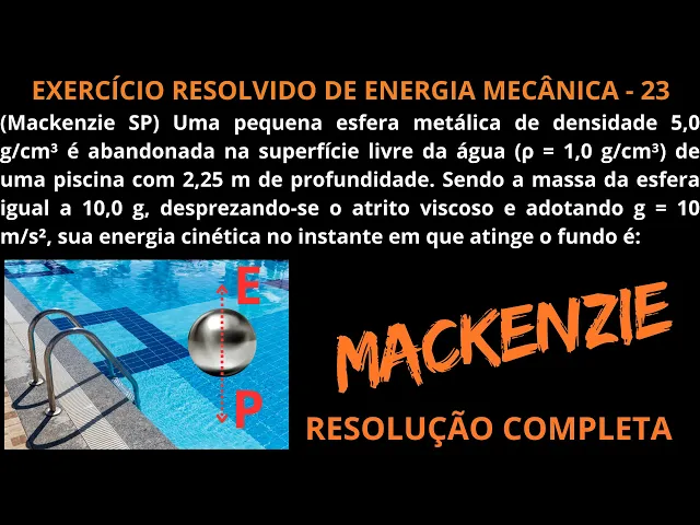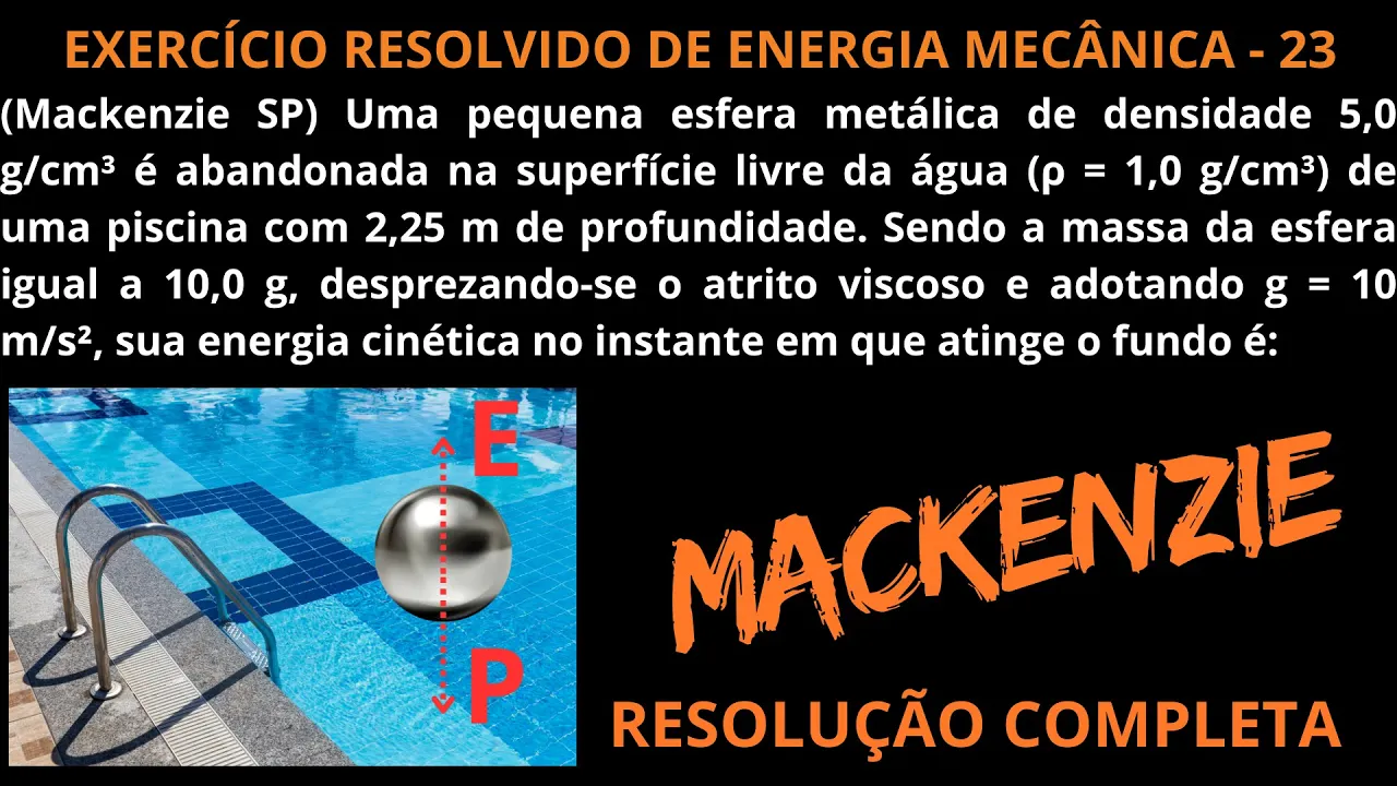 EXERCÍCIO RESOLVIDO DE ENERGIA MECÂNICA - 23 (Uma pequena esfera metálica de densidade 5,0 g/cm³...)