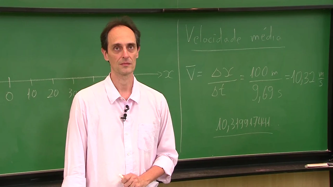 ao longo deste semestre a estação subterrânea sobre ciganos em outro por um ponto inscrevemos o deslocamento dele agora todos concordam que essa é só a velocidade média ou seja se ele correr se sempre de 10 pontos 32 metros por segundo ele e de completar os 100 metros em 9 ponto 69 segundos certo por que não podemos brincar um pouco com isso tentar levantar uma velocidade média uma grandiosidade um pouco menor deve tomar o intervalo aqui 100 metros quando o inter vá tomar os intervalos de 10 metros vamos pegar aqui os nossos clientes registros de tempo