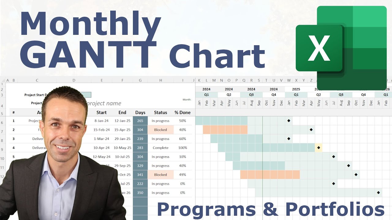 [Music] hi everyone have you ever needed to track a schedule in your project or track the tasks that you're working on well one of the best ways to do that is with a gantt chart and this is the absolute best gantt chart that i have ever come across and the template that i've created that people ask me for all the time and there are many reasons for this first of all it's created in excel but it actually looks like it's created in microsoft project so you don't have to go and buy microsoft project you can