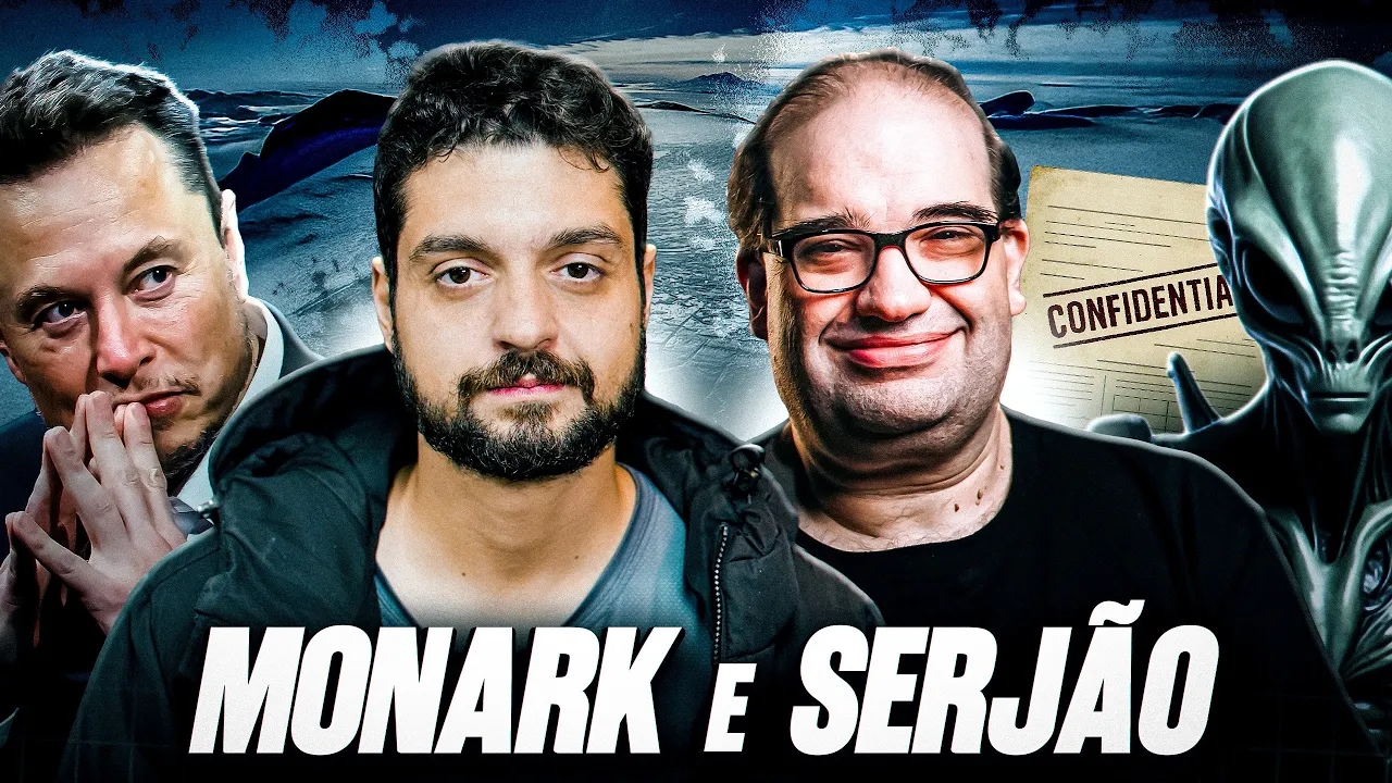 super chat, que no final a gente lê as perguntas da galera. Boa. >> Eu tenho um vídeo para mostrar, hein, que eu vou defender o Monarca agora, ó. Põe o vídeo aí pra gente aí, Gabriel. >> Quero que você me explique isso, Serjão. >> Ixe, lá vem. >> É, essa, essa é novidade. É a parte nova. >> Hum. >> Pelo menos para mim, né? >> Parte nova do quê? >> É da das teorias. Exatamente. Sobre alienígenas. >> Vamos lá. Põe aí. >> Então, eu também fico pesquisando. Fica aí na trás. É um assunto interessante mesmo.