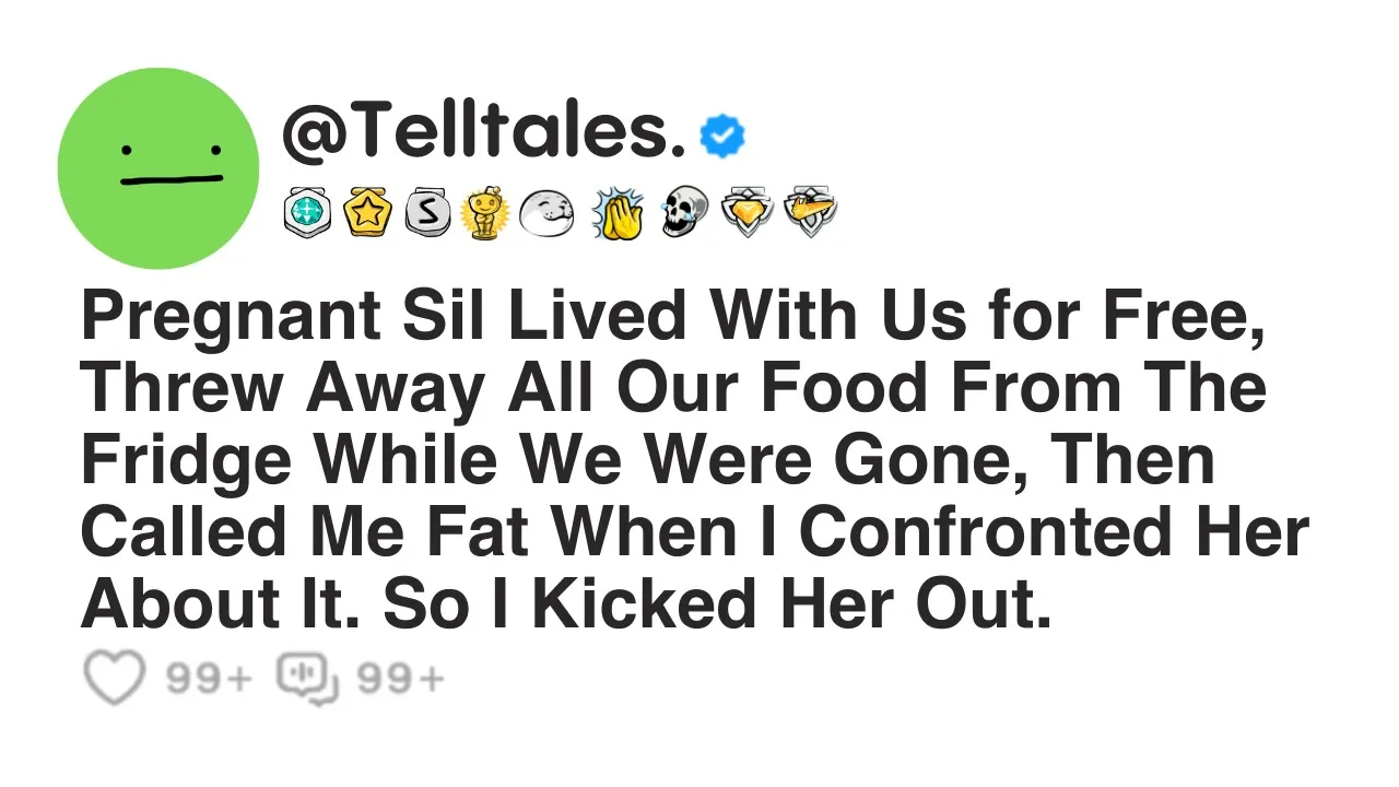 pregnant s lived with us for free threw away all our food from the fridge while we were gone then called me fat when I confronted her about it so I kicked her out so for the past 2 months my pregnant sister-in-law has been living with our family rentree because she needed a comfortable place to crash during her pregnancy in the apartment that she shares with three roommates was not really ideal for her situation she is 22 and moved here about a year ago right after she graduated to try and make it as a model so