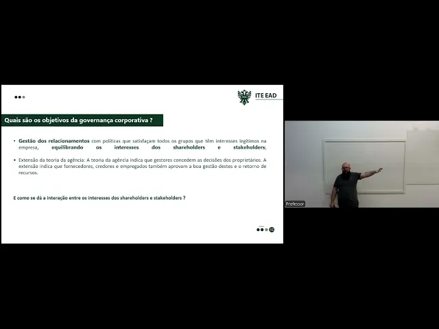 tudo isso quais são Então os objetivos da Gover corporativa né juntando tudo isso né batendo no liquidificador na hora que a gente junta mistura tudo isso então o que que é para que serve né Ah então a gente tem aqui que uma outra linha de objetivos da governança vai abordar então o equilíbrio entre as questões econômico financeiras ambientais e sociais porque Para para pensar né claro econômico financeiro Lógico né a gente precisa ganhar dinheiro eu preciso cuidado stakeholder piso cuidar do shareholder isso tá claro mas ao mesmo tempo eu tenho que pensar H em riscos