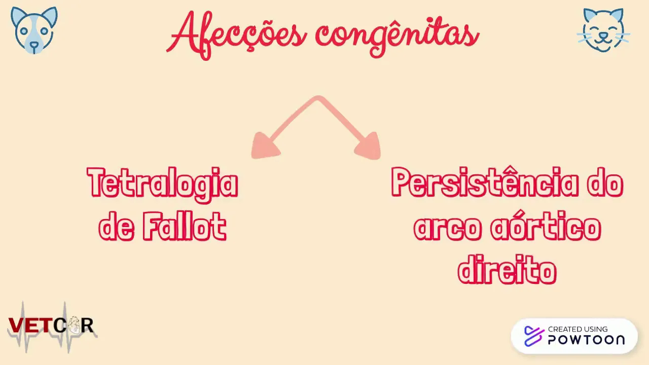 pulmonar hipertrofia com o tempo do ventrículo direito secundária dextroposição da artéria aorta e defeito do septo ventricular e região sob a ótica Essa é a quarta cardiopatia congênita mais frequente em cães sendo incomum em gatos raças como bulldog inglês E aí Eric should apresenta o maior para disposição a maioria dos pacientes com tecla a gente fala logo apresenta sinais clínicos antes do primeiro ano de vida como cinco cianose generalizada e intolerância exercício e disse né O diagnóstico é realizado através do exame clínico e exames complementares sendo confirmado pelo ecocardiograma a terapia de eleição é a