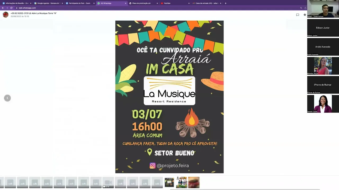 celular o toque final de semana e eu não olho agenda normalmente final de semana então quê que eu fiz gente olha aqui então Arraiá tá no dia três de Julho olha aqui joga Olha que um dia primeiro info de informação Arraiá no La Musique no domingo Tá bom tchau infud informação e eu coloco informações também as informações também no meu calendário aqui ó ifo aniversário da Larissa amigo meu me chamou para o aniversário da filha dele no sábado já faz umas três semanas na hora que me falou joguei no meu e-mail que eu mandei um