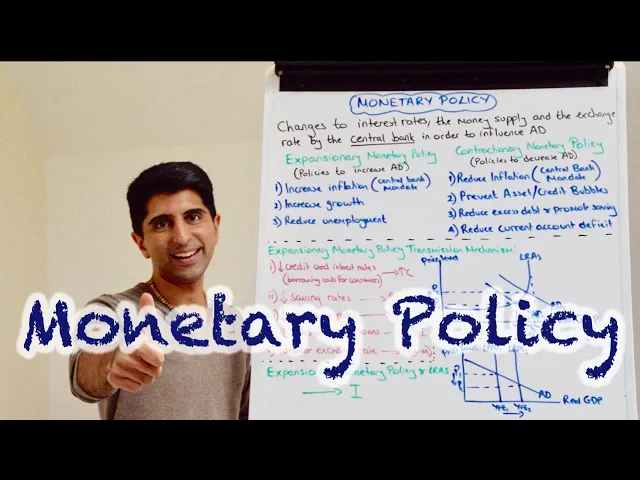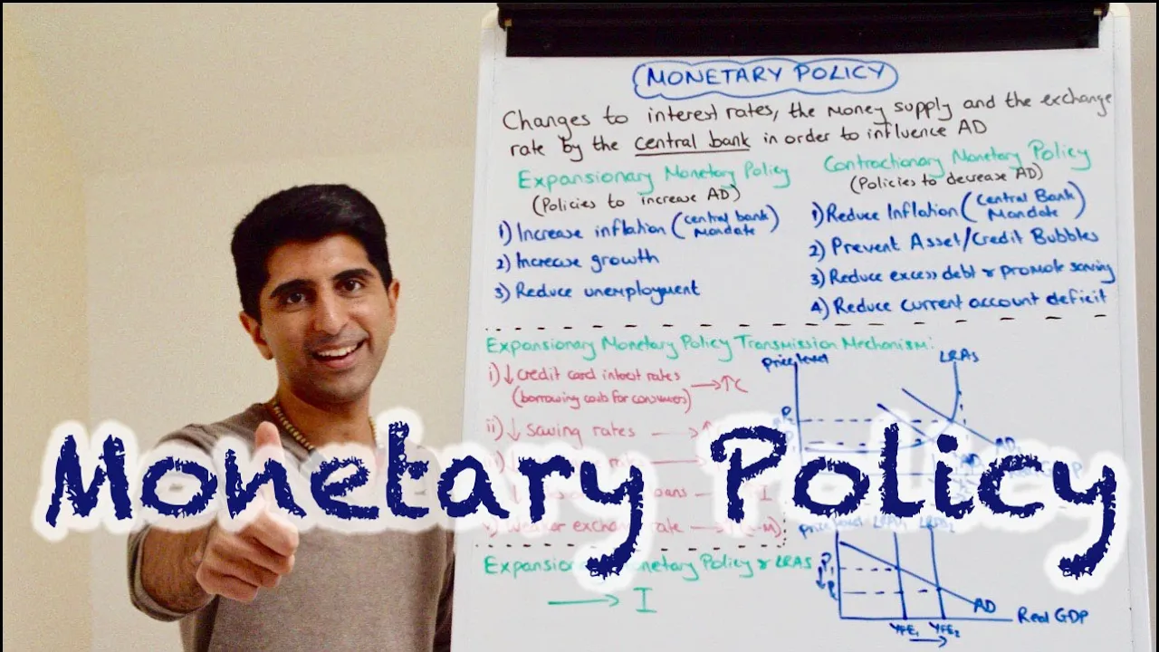 hi everybody monetary policy involves changes to interest rates the money supply and the exchange rate by the central bank of an economy in order to influence aggregate demand so very much like fiscal policy a demand side policy policies aimed to influence aggregate demand but unlike physical policy these policies will be enacted by a country central bank independent to the government and the mandate for these central banks around the world will predominantly be to control inflation in the UK the Bank of England's primary role is to hit a 2% inflation target so something to bear in