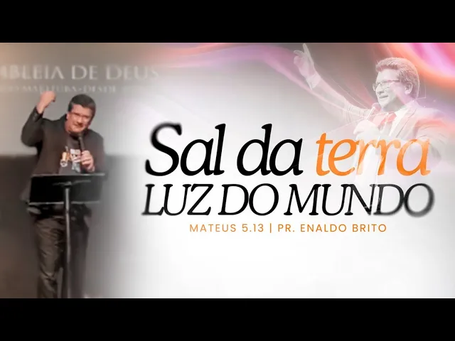 " Declare comigo assim: "Sal da terra, sal, ter sal, terra e luz do mundo, e luz do M. Você é sal da terra e luz do mundo. " Irmãos, esse tema "sal da terra e luz do mundo" Deus colocou no coração do nosso pastor, Pastor Samuel Câmara, e foi adotado por toda a nossa convenção.