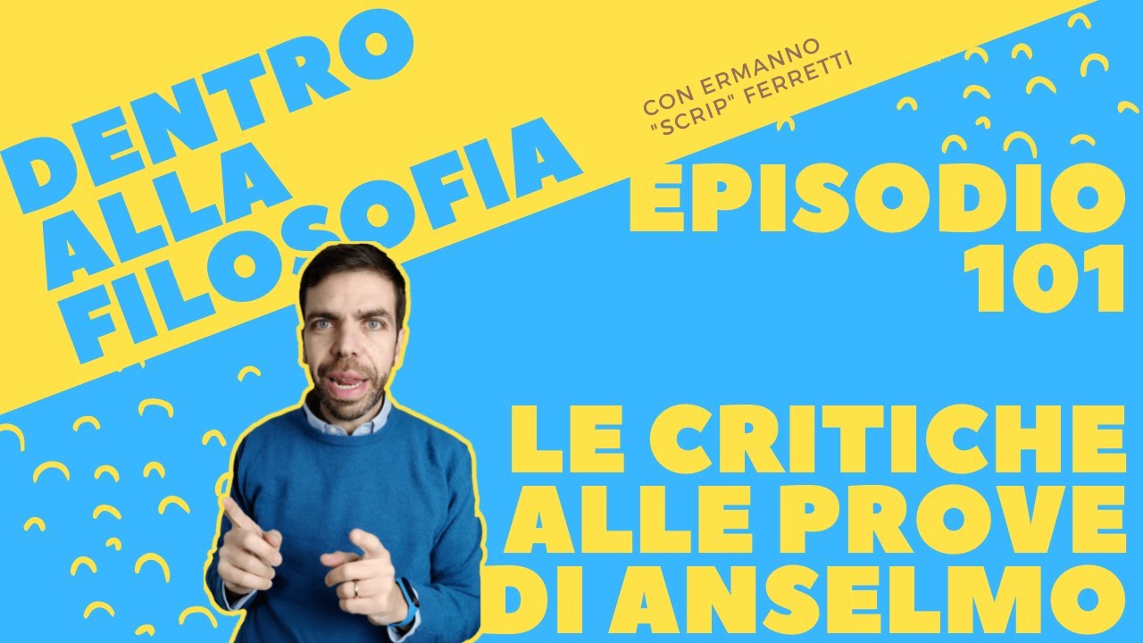 settecento cioè circa sette secoli dopo il momento in cui fu formulata sei o sette secoli dopo oggi ne parliamo o meglio iniziamo a parlarne perché di anselmo parlemo per due puntate dobbiamo parlare anche di altri temi collegati insomma iniziamo a parlare prima degli eletti c e degli anti del etici e poi delle prove di anselmo d'aosta cominciamo subito dopo la sigla [Musica] dentro la filosofia in podcast di ermanno script ferretti centesima puntata la prova ontologica di anselmo d'aosta [Musica] eccoci qui di nuovo insieme ben trovati per parlare di filosofia come avete sentito dalla premessa questa