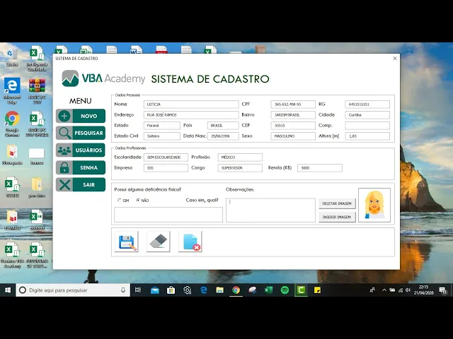axis como o banco de dados aqui vão utilizar o excel mesmo com banco de dados e depois do próximo sistema whats então como é que funciona esse sistema aqui é um sistema de cadastro genérico porque aprendendo aqui as técnicas ea lógica da programação depois você pode aplicar os conhecimentos para criar qualquer tipo de sistema de cadastro de pessoas de produtos de fornecedores etc tá o importante é você aprender as técnicas de inserir dados na base editadas na base e deletar os registros na base então eu vou clicar aqui nesse botão novo a de uma série