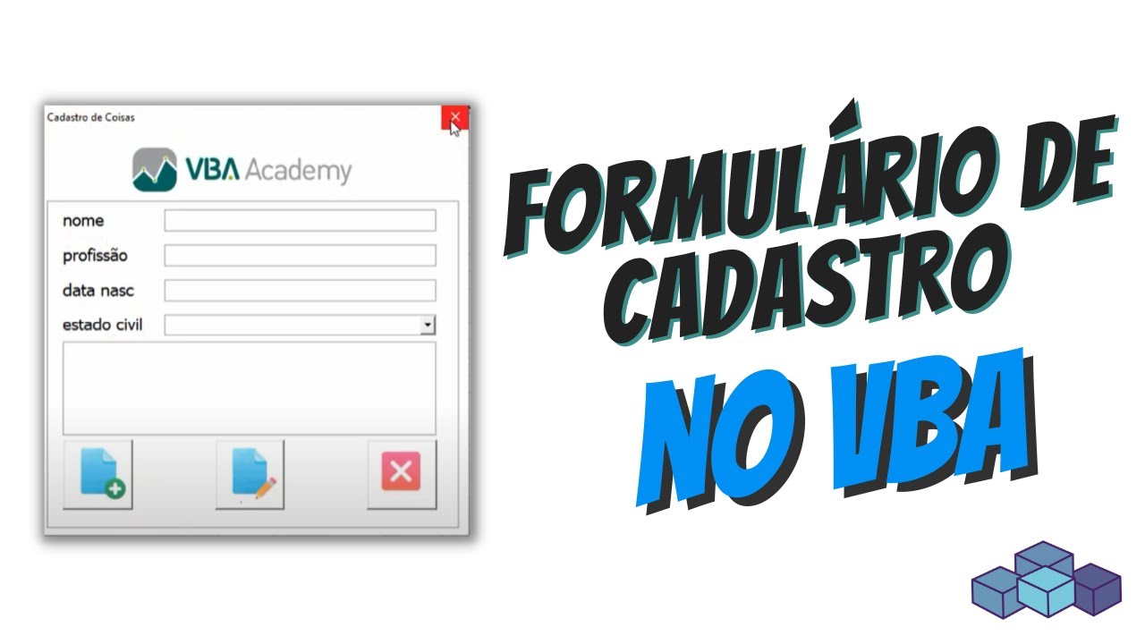 baixar essa planilha aqui e vai começar a programar junto comigo não se não vamos perder tempo criando esses esses controles ok eu só vou nessa aula dá uma passada por todos os controles para você entender o que que foi feito aqui beleza então quê que eu tenho eu tenho formulário useform que tá aqui é que eu tenho um controle imagem tá que eu coloquei a imagem do curso aqui da vb a karen você pode depois alterar se você quiser aqui do lado eu tenho ou tenho label que eu escrevi sistema de cadastro na propriedade caption