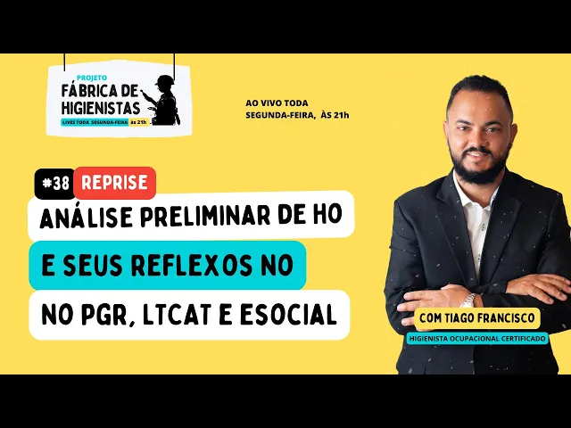 [Música] pessoal muito boa noite hoje não vai ser uma live né vai ser praticamente uma aula que eu vou falar sobre análise preliminar de higiene ocupacional e quais são os seus impactos no programa de gerenciamento de riscos no ltcat e também em laudos de insalubridades tá então para isso eu vou ter que voltar em alguns princípios básicos da higiene ocupacional pra gente entender né qual que é etapa da análise preliminar de perigos e riscos ocupacionais e entender os impactos os que tem no pgr no ltcat e também em laudos de incub bridade tá então a