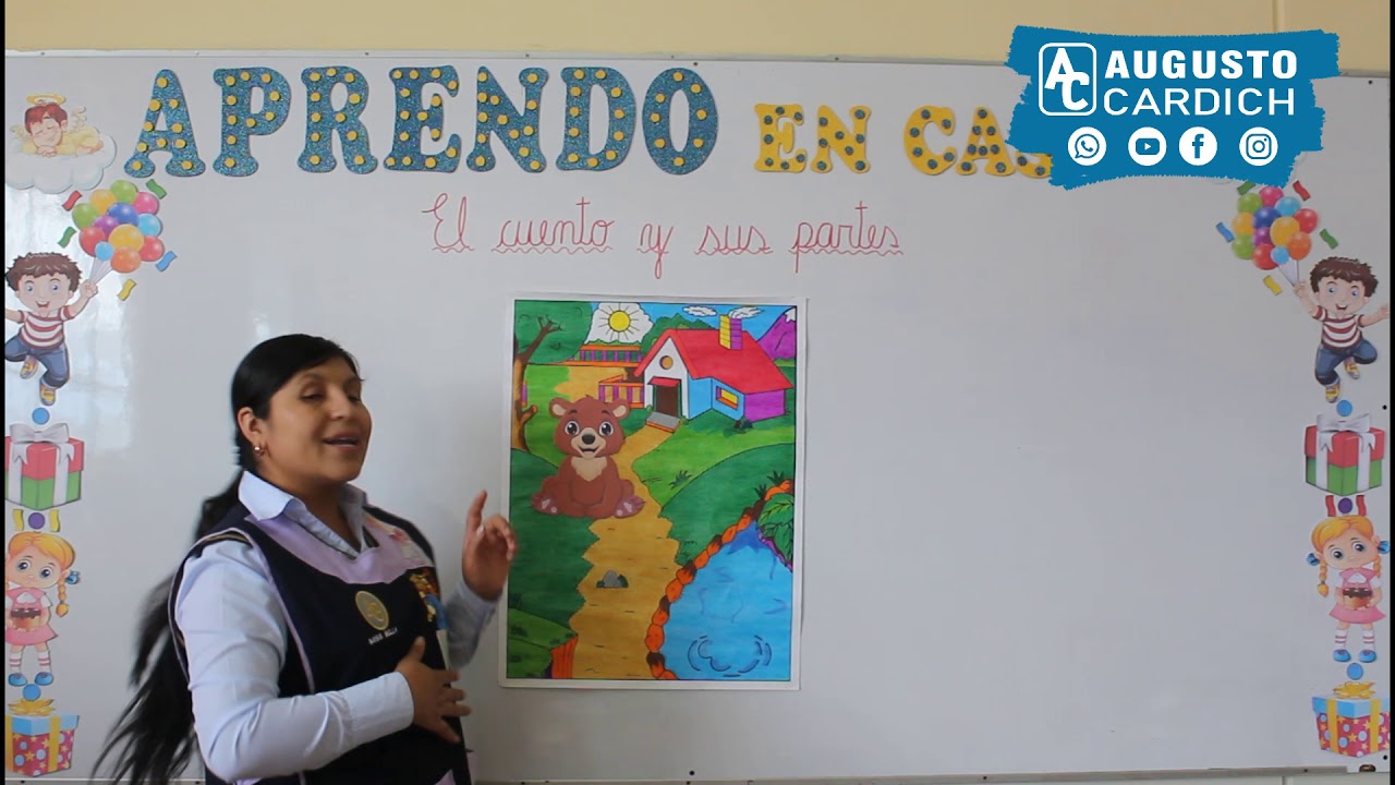 [Música] hola chicos hoy vamos a aprender sobre el cuento y sus partes cuántos cuentos habéis leído un montón verdad pues vamos a ver brevemente en qué consiste el cuento es una narración breve de una historia inventada puede ser de distintos tipos popular de aventuras policiaca de humor de terror su estructura consta de las siguientes partes inicio o presentación es el comienzo del relato donde se presenta la historia los personajes el lugar y el momento en el que transcurren los hechos por ejemplo érase una vez en un pueblecito llamado villa abajo un niño llamado lucas tenía