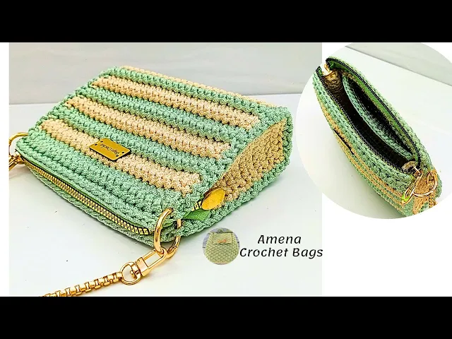 كروشيه شنطة عملية بغرزة جديدة مع جيب داخلي سهلة وبسيطة