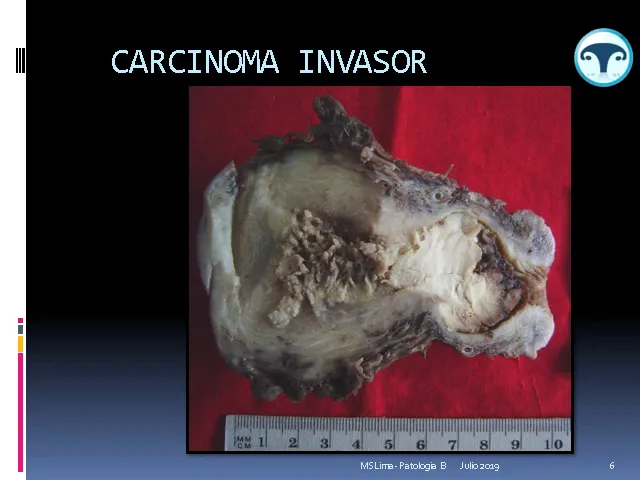 el carcinoma de cuello uterino el carcinoma invasor tiene un pico de incidencia en edades un poco más tardías que las lesiones preneoplásicas alrededor de los 45 años variando esto mucho depende de el estado socioeconómico que tenga en general hoy día se ven mujeres que no se han hecho nunca el screening de papanicolao porque si no no llegaríamos al kart sea un invasor porque puede consultar la paciente por la correa por hemorragias vaginales por dispareunia o por be suya el carcinoma cervical invasor es altamente agresivo porque recordemos que tenemos la vejiga por delante el recto por
