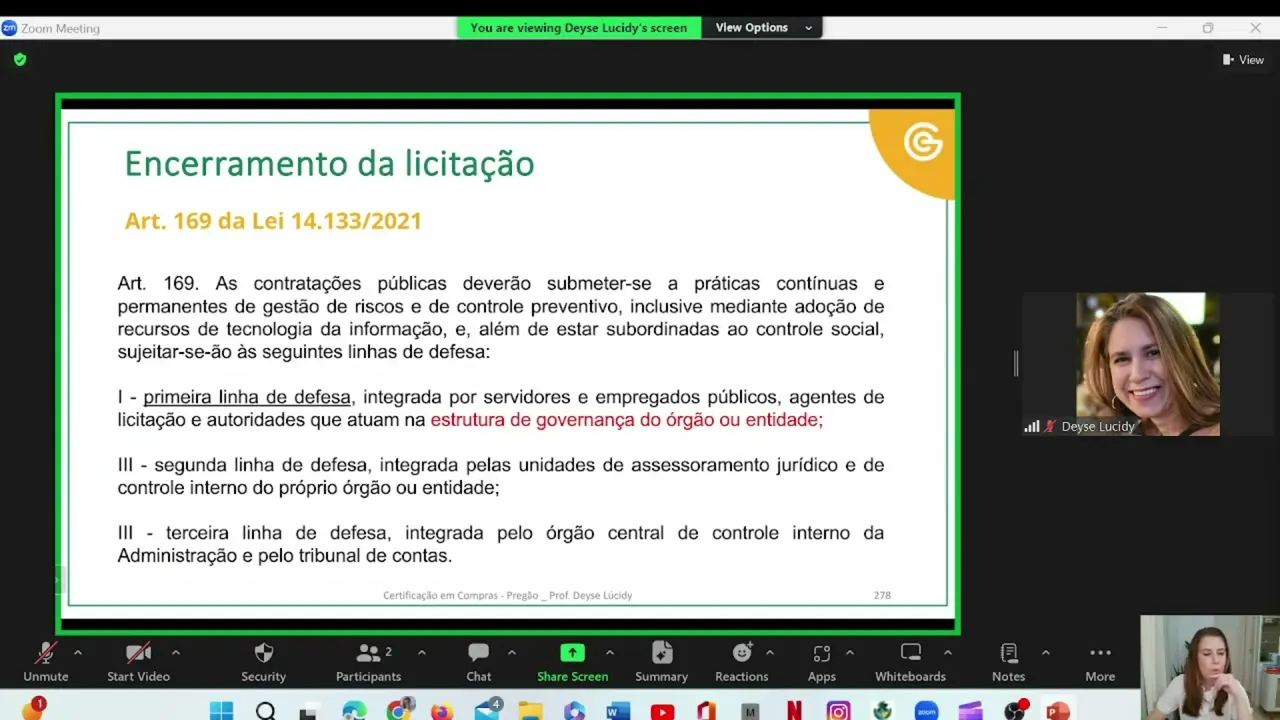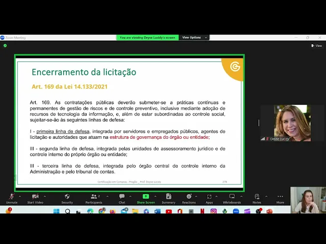 [Música] Olá pessoal bem-vindos ao nono e último módulo do curso de pregão da escola de governo e eu sou a professora Dace lcid neste nono módulo do curso do pregão nós vamos aqui aprender a fazer o encerramento da licitação Pronto agora que eu já passei por todas as fases do seleção de fornecedor só falta eu concluir a minha licitação Então nós vamos encerrar a licitação Vou compartilhar aqui com vocês a imagem aqui do fluxograma dessa fase que é a fase a fase de homologação da nossa licitação bem essa fase de homologação ela começa logo após
