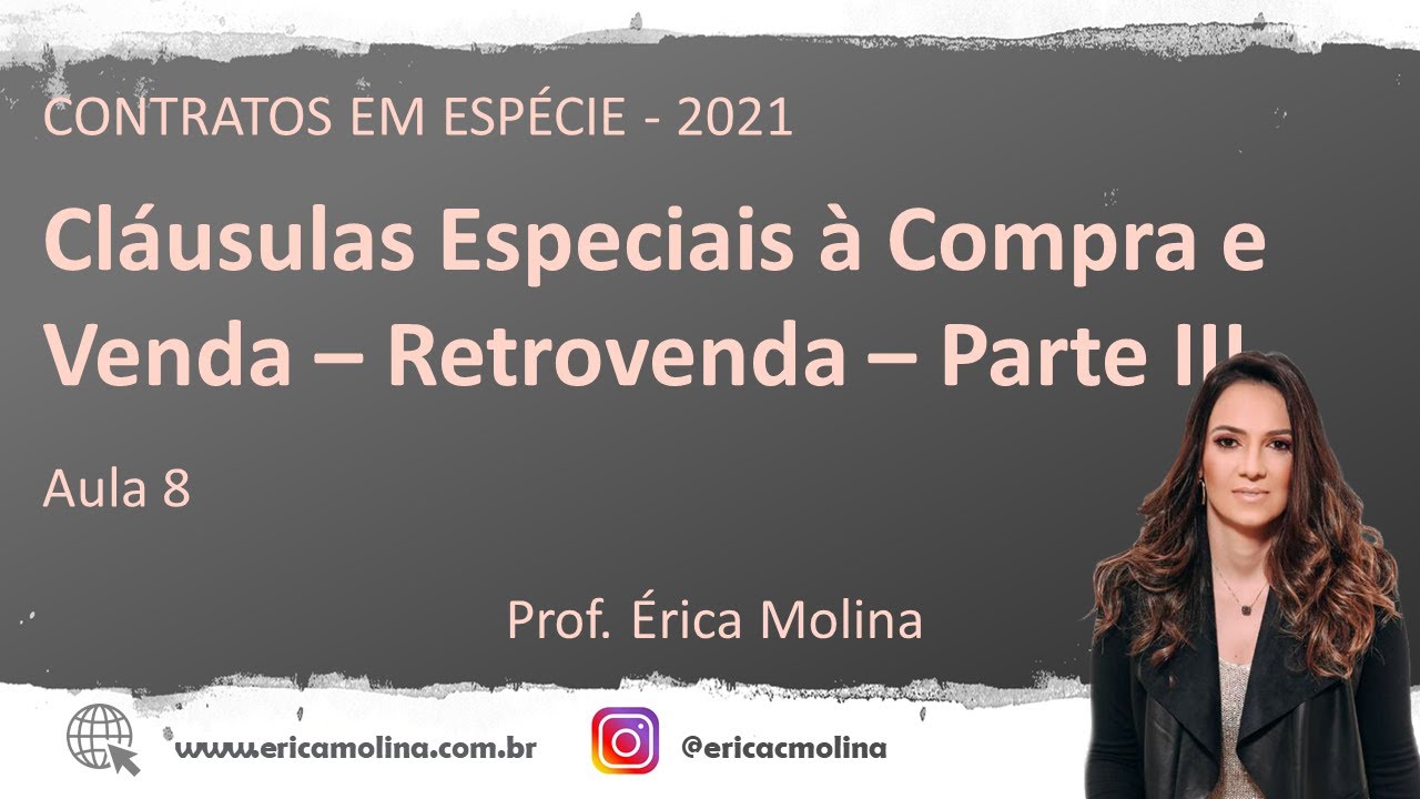 começar a falar da primeira delas que é cláusula de retrovenda próprio nome já está dizendo o que que é algo retro que volta então o que que vai acontecer aqui eu vou voltar à venda tua causa de retrovenda ela nada mais é uma do que uma cláusula em que o comprador eo vendedor estabelecem o direito ao vendedor de retomar a propriedade da coisa voltando o negócio jurídico voltando esse vendedor a ser o proprietário dela toca cláusula de retrovenda é quando eu vendo uma coisa mas eu quero ter a oportunidade de voltar a ser a proprietária