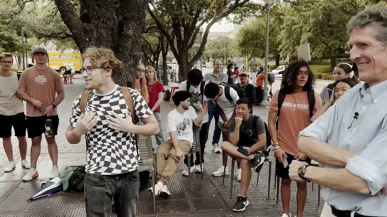 about it's all about a free exchange of ideas we agree to disagree and we're pursuing truth well that's what we're doing out here I've never taken one debate class I am not a debater but I try to think and I try and respect people by listening to them I'm trying to listen to you and then we try and pursue truth together and I thought that's what a liberal arts education was all about a free exchange of ideas we agree to disagree but we listen to each other we respect each other and we're pursuing truth well