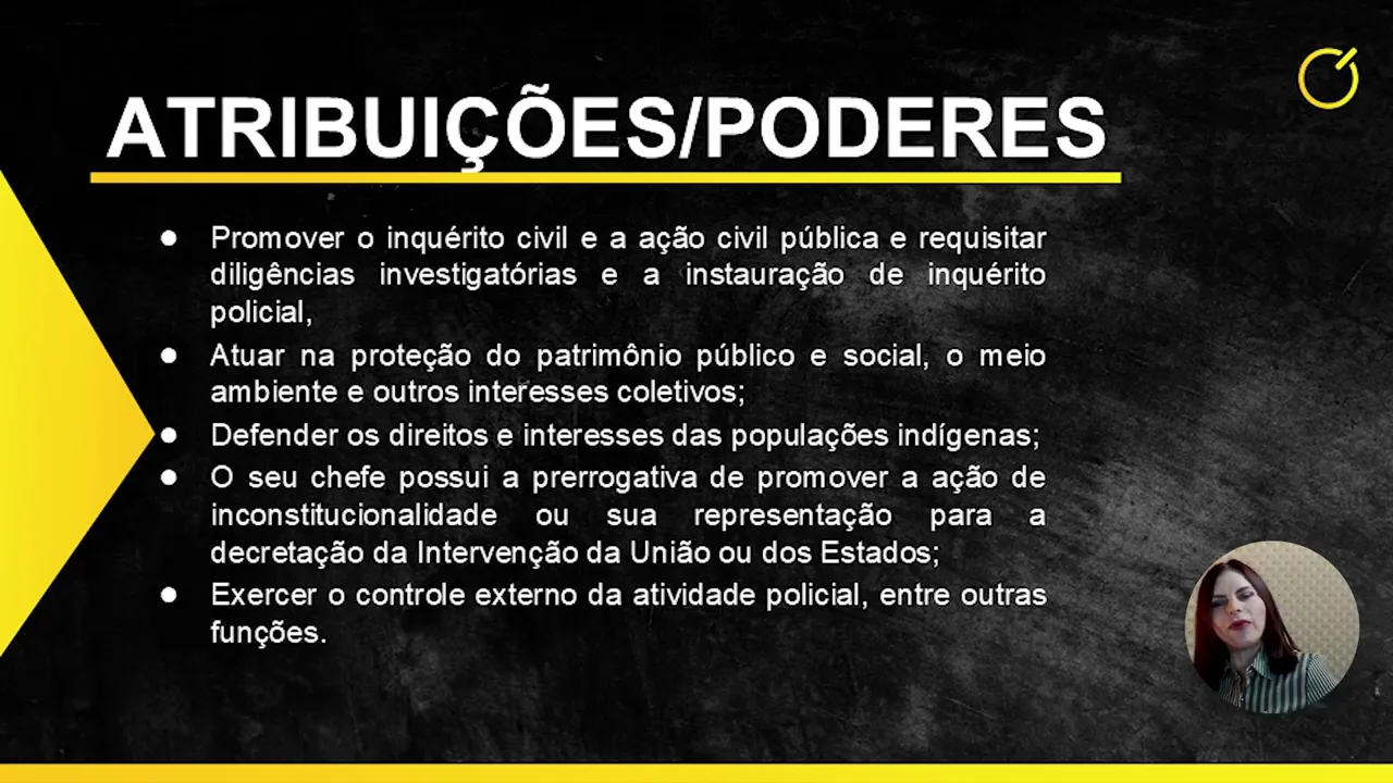 Então, cabe ao Ministério Público atuar na proteção das liberdades civis e democráticas. Assim, ele faz parte do sistema de Justiça, mas não é uma instituição que esteja dentro do Poder Judiciário; ele é independente, ou seja, o Ministério Público não está subordinado a nenhum dos poderes da República. Nem ele é executivo, nem ele é legislativo e também não é judiciário, e goza de autonomia para o cumprimento de suas metas.