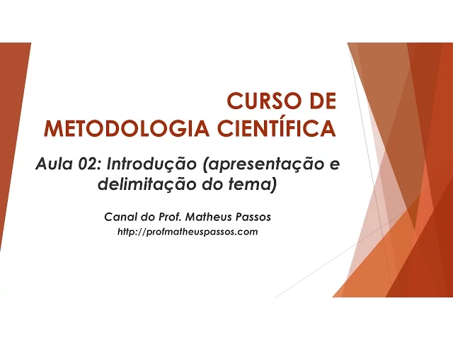 olá pessoal aqui o professor mateus e ramos então dar continuidade ao curso de metodologia científica e nessa segunda aula do curso eu vou falar sobre a montagem da introdução de um projeto de pesquisa antes de começar só relembrar que eu estou tendo como foco aqui um projeto de pesquisa mas que essas idéias elas podem ser utilizadas e podem ser adaptadas conforme a necessidade de cada um de vocês então dito isso vamos lá o quê que é então o que precisa ter na introdução de um projeto de pesquisa a primeira coisa lembrar que um projeto de