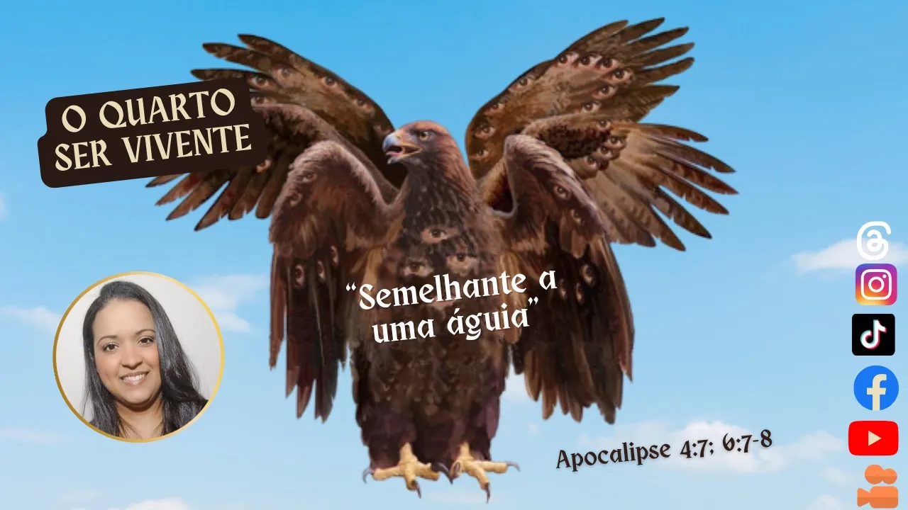 Os quatro seres viventes do livro de Apocalipse o leão o bezerro o homem e a águia simbolizam a totalidade da criação e os quatro Evangelhos eternos eles também representam as quatro faces de Cristo e em uma interpretação literal eles representam uma classe de serafins que ministram Diante do Trono de Deus e oferecem a ele um serviço de observação ininterrupta e Que proclamam a sua Glória Honra e poder bem hoje eu vou estar falando um pouquinho sobre o quarto ser vivente que é semelhante a uma águia uma águia voando com a sua visão aguçada e o