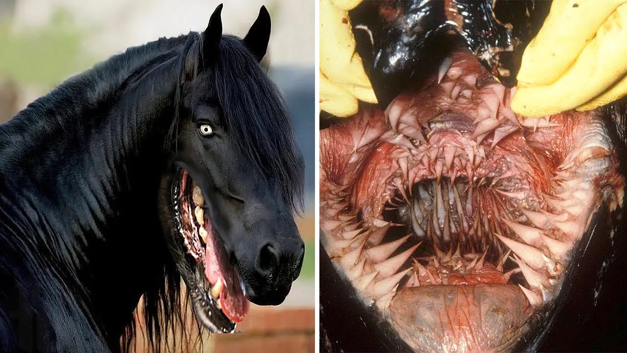 lethal who knew sea urchin were so dangerous another animal with a surprisingly scary mouth is horses horses bite humans and animals they perceive as dangerous they have very muscular Jewels giving them a bite force of 500 per square in they have 44 large teeth which are strong enough to bind wood and other material speaking of wood we have to look at the Woodpecker you wouldn't imagine this bird has such a scary mouth but take a closer look a woodpecker's tongue is three times the length of its beak it's so long that when it shuts its