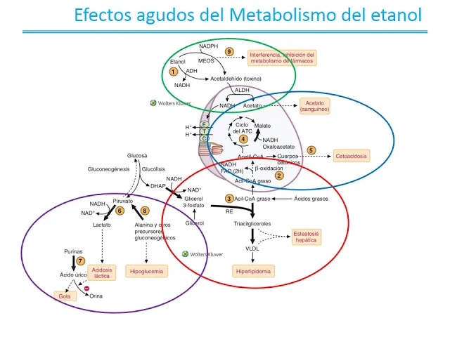 terminamos de hablar de esta diapositiva chicos después lo podemos charlar igual pero vieron que interesante se los acomodó en círculos porque como no puede usar el puntero no sé por qué me pareció que iba a ser más fácil para ustedes focalizar a medida que lleva hablando hablamos de los efectos agudos derivados del aumento del índice nahb reducido en el oxidado producto del metabolismo hepático del etanol pero no falta hablar de la obsesidad del arte tal de ido y de la formación de especies reactivas de oxígeno que lleva también a daño a fácil el acetaldehído como