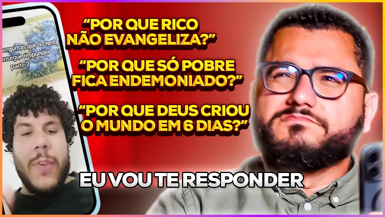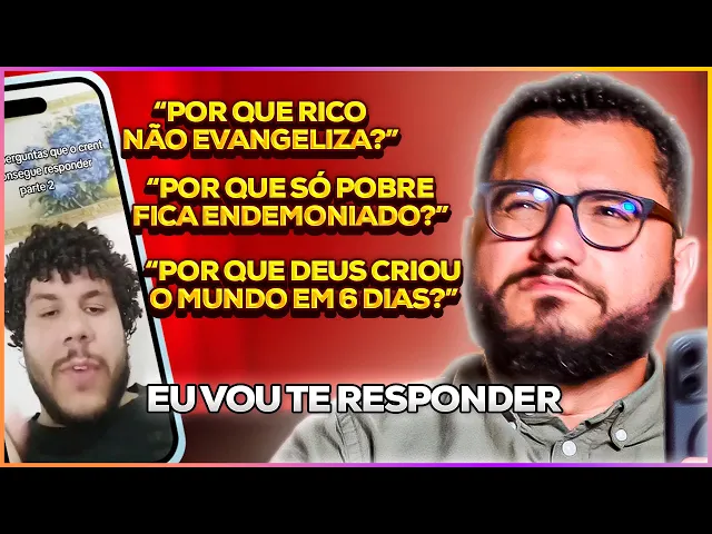 que é vírus que dá na Itaoca aqui é vírus americano meu patrão vira aqui mas viros americanos você tosa igual e vamos paraum programinha um programinha diferente programinha especial vocês me mandaram no meu Instagram o pedido para eu reagir a um rapaz falando aqui ó fazendo perguntas que o crente não consegue responder vocês sabem que eu tenho uma queda eu tenho uma queda a pessoas que dizem que os crentes não conseguem responder alguma coisa porque assim olha é uma parada que me deixa assim uh lembra da tret com Olávio de Carvalho Olávio de Carvalho fez