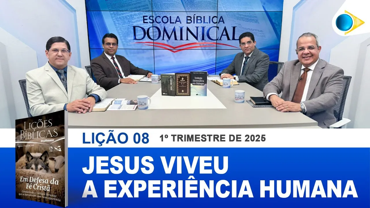 irmãos estamos iniciando o seu programa Escola Bíblica Dominical e nesta oportunidade estudando a oitava lição que tem como título Jesus viveu a experiência humana semana passada Nós estudamos a lição de número sete que teve como título as naturezas humana e Divina de Jesus e naquela lição nós podemos estudar no primeiro tópico sobre o ensino bíblico da dupla natureza de Jesus e aqui pontuamos que metodologicamente e o Pastor Ezequias tem utilizado sempre o primeiro tópico Ah com a demonstração Bíblica da doutrina do tema da lição e é nesta lição digo e é neste tópico que o