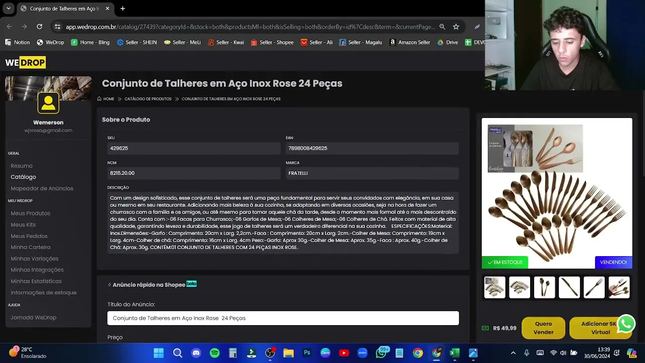 deixar e contas adicionais seria aí contabilidade e outros mais e aqui faturamento e a quantidade de vendas só para ter aí para dividir pelo valor de pedidos o seu custo fixo eu acredito né então baseie mais ou menos aí aqui eu coloquei 55.000 1500 já tava na verdade né nem sei de onde que eu tirei isso mas vai deixa assim mesmo então custo do produto 4999 e taxa Marketplace ch hoje é 16% taxa do integrador acho que a gente não tem isso hoje também e o valor fixo aqui do frete Então vai vai depender do