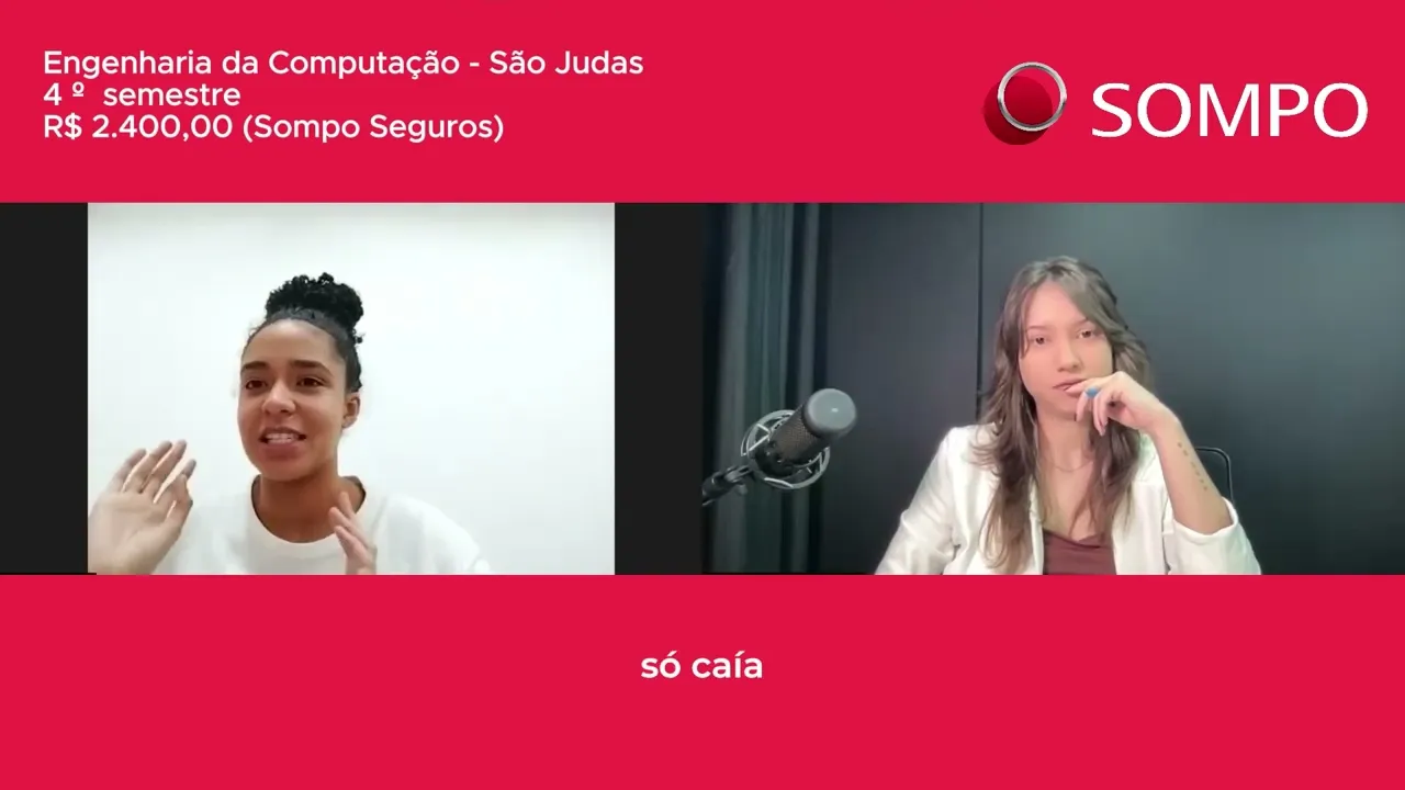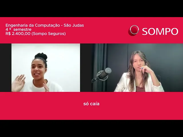 aí comprei aí comecei Devorei O PDA tudo mais eu ia fazer uma entrevista com a companhia de estágio nisso que eu ia fazer aí eu já tive que sair atropelando tudo né aí eu fui avançando nas etapas da sompo né mas assim eu tava muito nervosa mas eu acho que também é por conta da oportunidade sabe tipo de você ter uma oportunidade tão grande assim então tipo como é uma coisa meio distante da minha realidade tipo assim todas as pessoas que eu conheço tá al numa empresa pequena aí é caixa e tá fazendo esse tipo