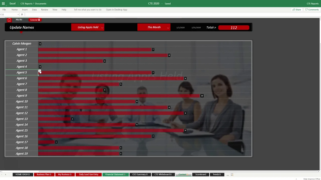all right guys welcome to the new contest page we've simplified this a lot and making it much more visually pleasing as well so your contest page which you guys can cast to a TV screen very simple so you guys can choose any category you want we've added all of my business in here as well before it was just Lee jet so whatever category you guys want to put up on that and have a contest so we can do let's do listing appointments held and we can say listing appointments held this month and it's gonna go