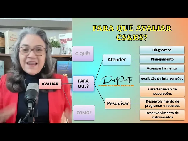 eh se se colocar em termos da Vida em termos do contexto social em que ela vive Veja quanta coisa importante para eh muitas vezes você tem que lidar com um ou dois desses aspectos e o restante se arruma então é importante ter esse mapeamento para ver onde você vai realmente intervir e aqui para que avaliar é a nossa segunda pergunta aqui tá certo avaliar para quê em geral Nós temos dois objetivos ou atender que é atendimento educacional atendimento eh terapêutico e também no caso de pais de de de pessoas que têm seus filhos também eles