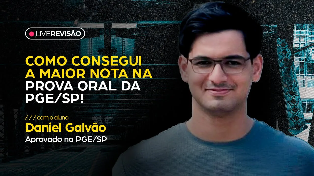 Fala galera vamos falar hoje sobre pge São Paulo a gente vai receber o Daniel Ele que arrebentou na prova oral da PG São Paulo tirou maior nota e hoje eu vou falar um pouco com ele sobre a preparação dele como é que foi o que que que que ele fez diferente o que mudou o a trajetória dele o que foi essencial o que não foi os erros que ele cometeu e que ele Conseguiu identificar para Agnar e os rumos que ele tava traçando ali Daniel aí Opa e aí Chico tudo bem E aí Daniel beleza