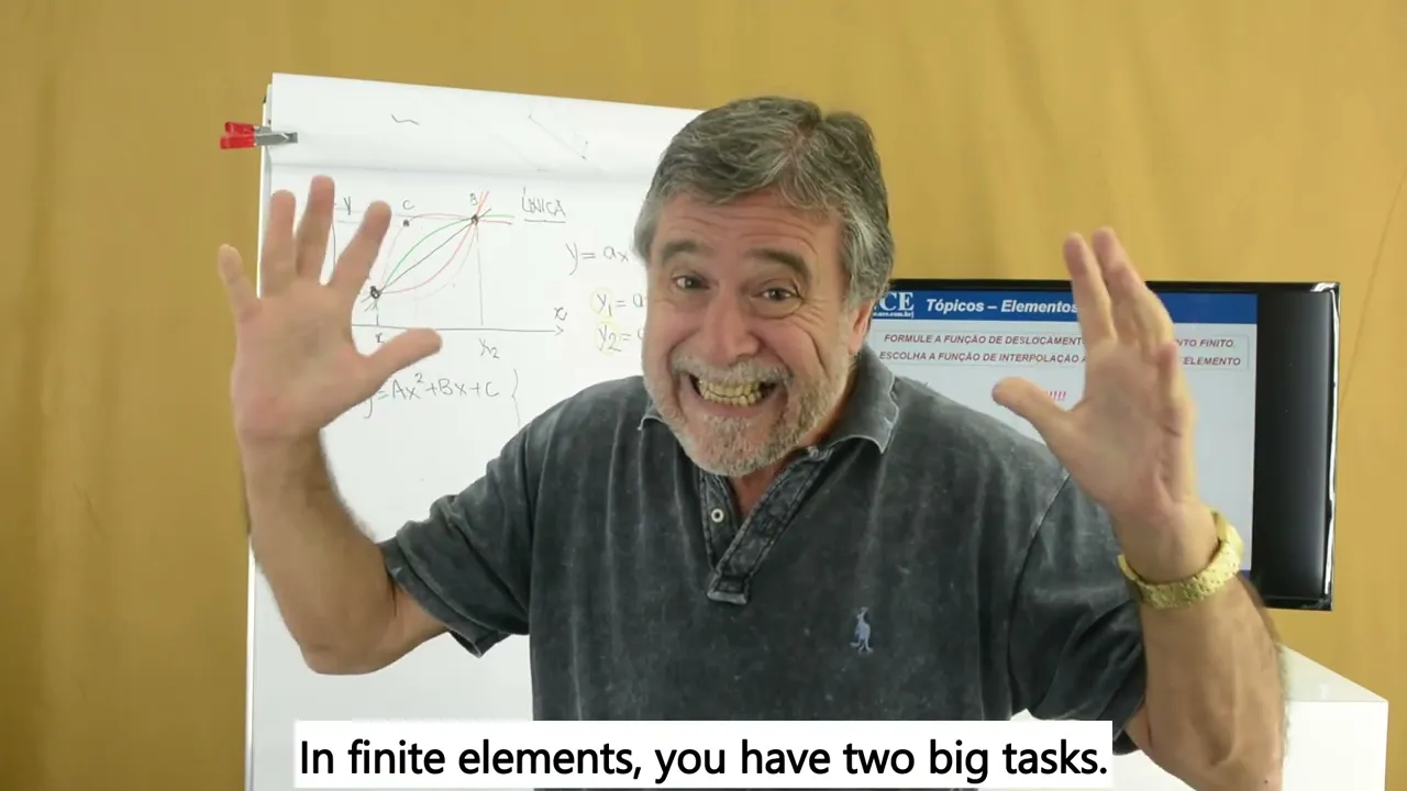 finitos se a gente entender isso na viga nós vamos expandir pro mundo B tridimensional usando né um pouco de astúcia e matemática no bom sentido né tá claro é o que nós vamos fazer agora então nós vamos dar o grande primeiro passo o primeiro passo para formular qualquer elemento finito é escolher a sua função de deslocamento ou função de interpolação é a função que a Partir do deslocamento nodal permite calcular o deslocamento dentro do elemento Ok então vamos fazer isso agora Então vamos começar né até Vou colocar aqui ó a primeira grande tarefa ao formular