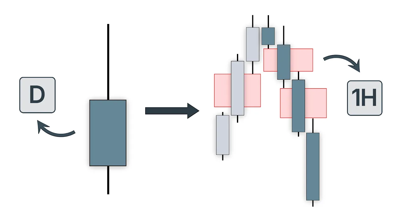 off and the entry here is the least of your concern Buy on any candle right there and you'll probably be fine the most important part was understanding that candle signs on the higher time frame and that's arguably also the most difficult part now this is now even stronger if you now combine it with the understanding of this fair value area right here that we had on Euro US dollar to understand why it actually continued lower right there and not continued higher this is exactly what the previous video touches on so you can go ahead and