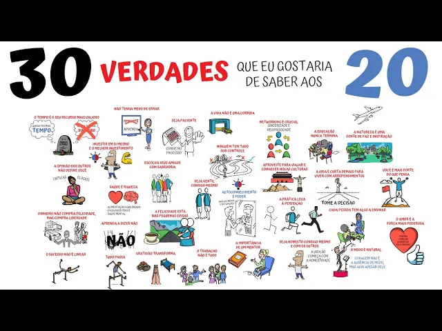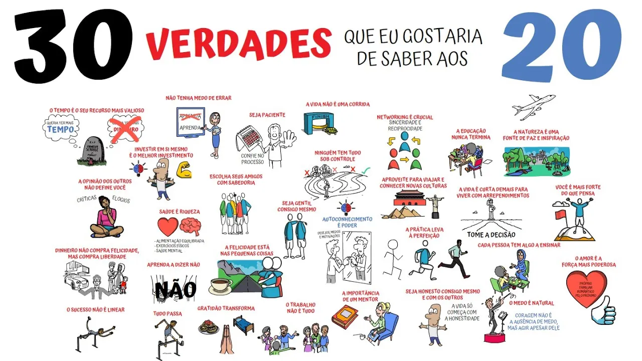 gostaria de ter conhecido aos 20 verdades que espero possam ajudar você a Navegar melhor por essa fase tão importante da vida um o tempo é o seu recurso mais valioso dinheiro vai e vem mas o tempo não volta use o sabiamente priorize o que realmente importa porque o tempo que você gasta nunca poderá ser recuperado dois investir em si mesmo é o melhor investimento cursos livros saúde tudo que você investe em si mesmo tem um retorno incalculável o conhecimento e a saúde são fundamentais para uma vida bem sucedida e feliz três não tenha medo de